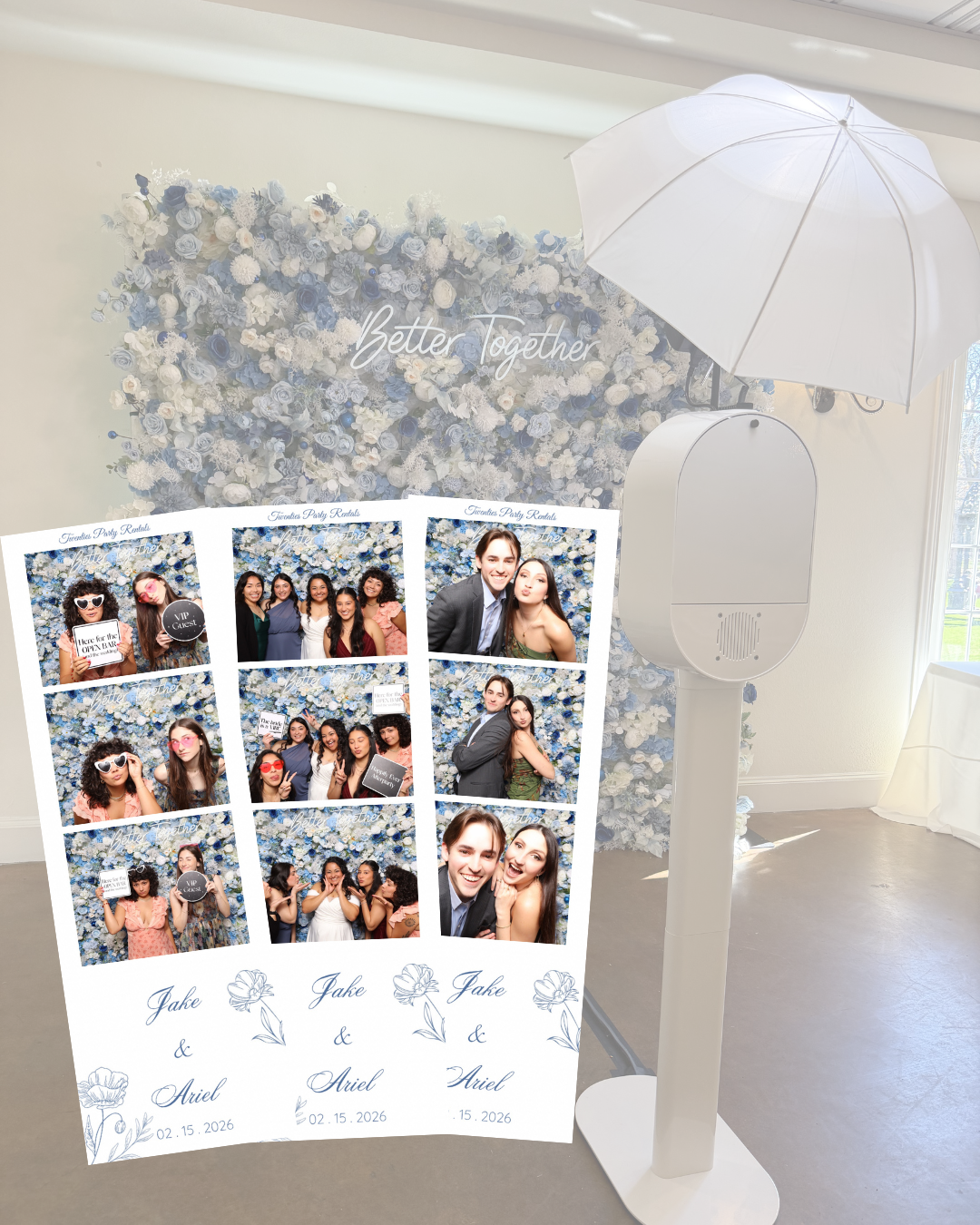 Twenties Party Rentals specializes in photobooth experiences, floral arches and flower wall backdrops designed to create unforgettable wedding moments. We focus on high-quality imagery, seamless service, and beautifully styled setups that complement your wedding aesthetic. From timeless black-and-white studio glam to romantic floral statement walls, our goal is to give couples a stress-free experience while capturing memories their guests will cherish forever. We handle setup, breakdown, and every detail in between so you can fully enjoy your special day.