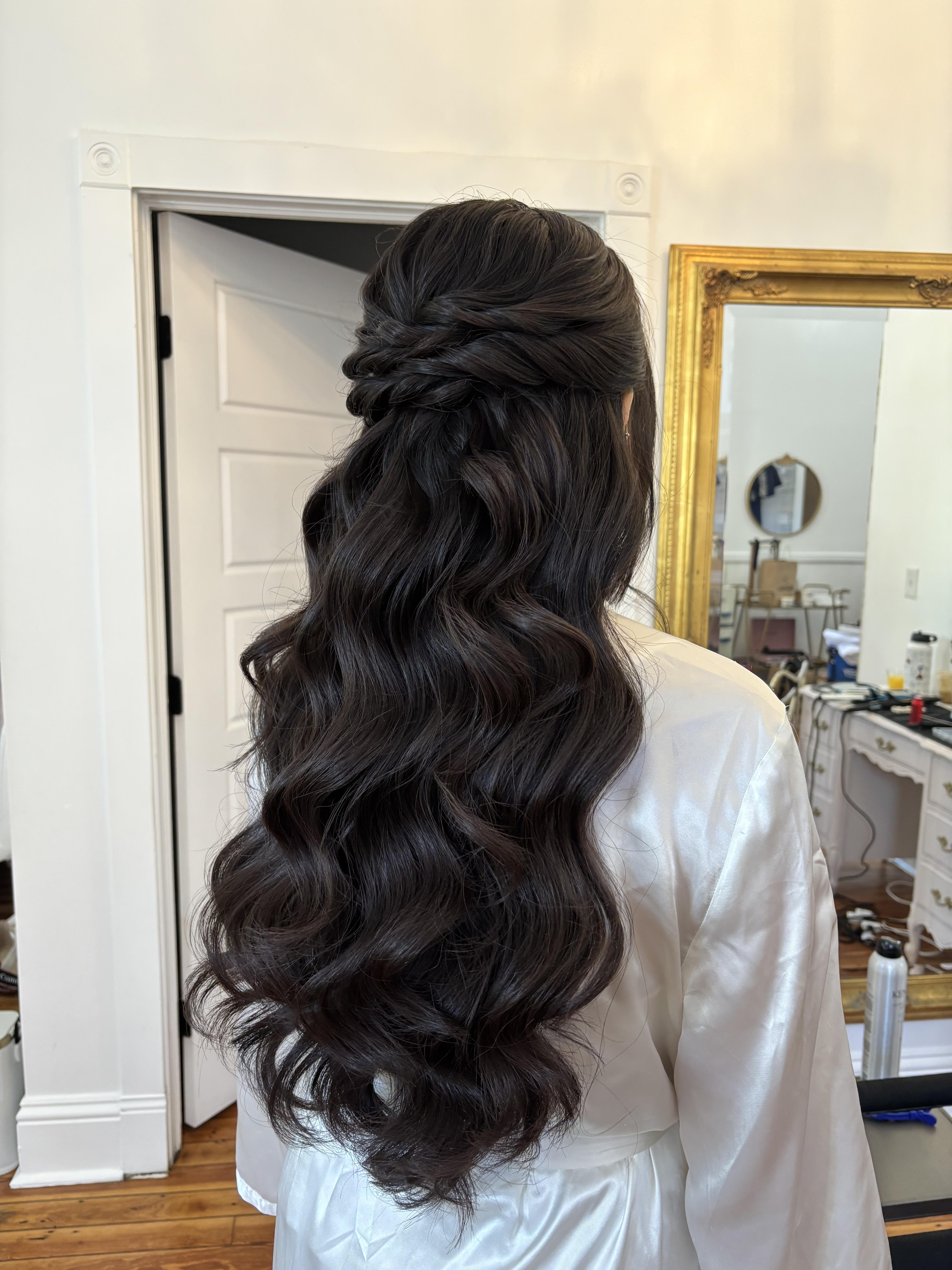 Naomi Styles Hair was an absolute pleasure to work with for my wedding day. From our very first interaction, Naomi was friendly, personable, and professional. She has a calming, caring demeanor that immediately put me at ease. Naomi was willing to travel to style hair for just myself and my mom, which was SO important for me because I wanted to get ready at my wedding venue and not in a salon. Her work was exceptional - my hair looked beautiful (in person and in pictures) and held all night long. Naomi was also incredibly thoughtful, even helping me put on my necklace and veil before my first look. I am so glad I chose her for such an important day. Thank you, Naomi!