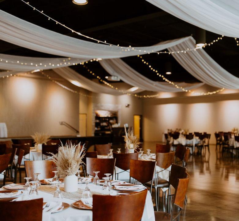 The Willow Room offers an intimate, modern setting that’s perfect for smaller weddings, social gatherings, and corporate events. At approximately 3,000 square feet, it comfortably accommodates up to 160 guests while still allowing plenty of space for dining, dancing, and mingling. Clean, contemporary design with neutral finishes makes it easy to personalize with any décor style—from elegant and romantic to sleek and modern.