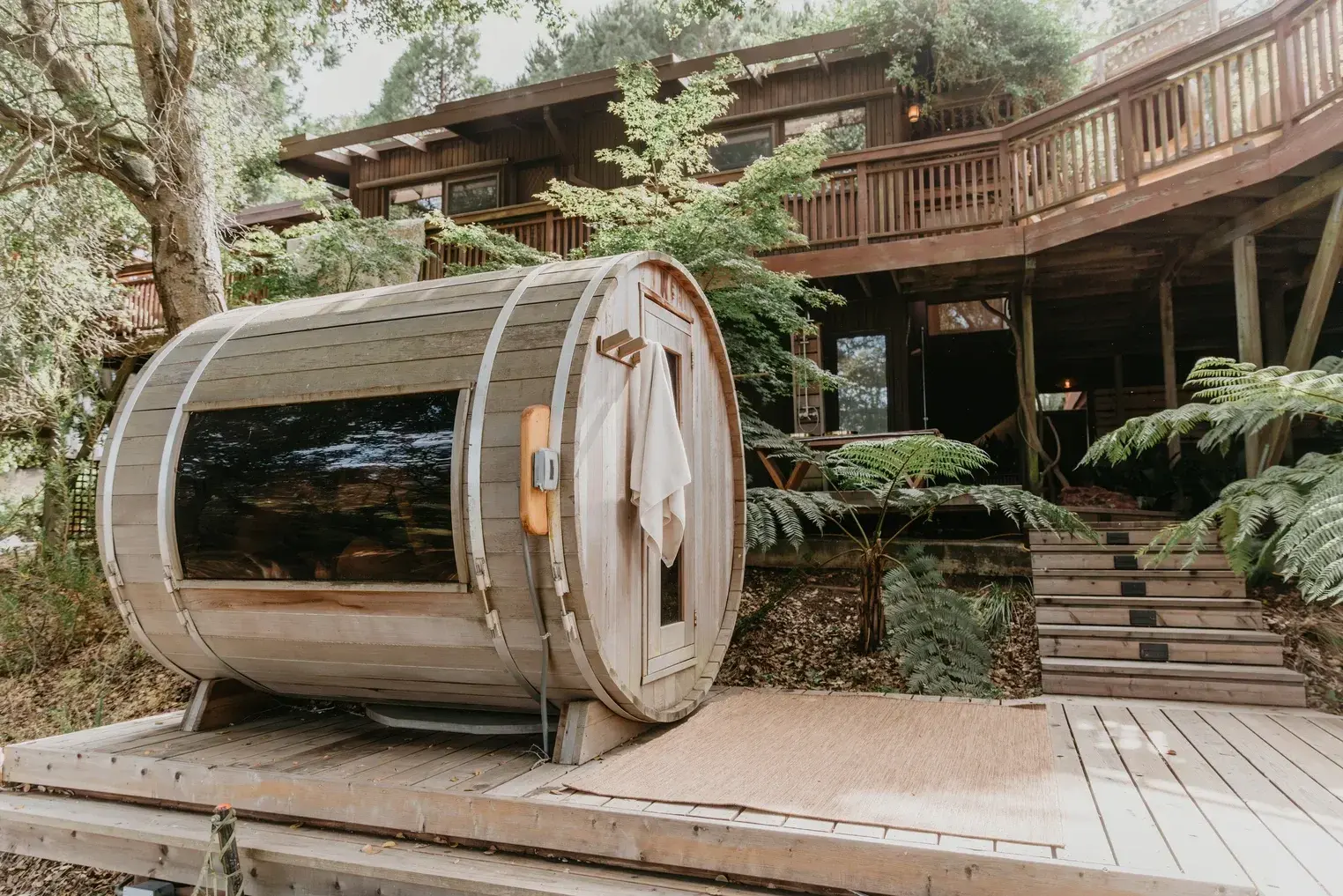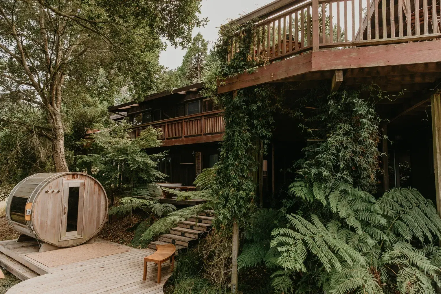Anza Retreat (often referred to as Anza or Anza Sanctuary) is a 3,000-square-foot mid-century modern estate designed to be a "dwelling among the elder trees." It is a minimalist, high-end venue that balances the professional needs of a corporate offsite with the restorative atmosphere of a wellness sanctuary. The property is set down a private road on a hillside overlooking Tilden Regional Park and Wildcat Canyon. The architecture emphasizes "indoor-outdoor flow," with multilevel redwood decks that wrap around the house, offering views of the forest canopy and rolling hills.