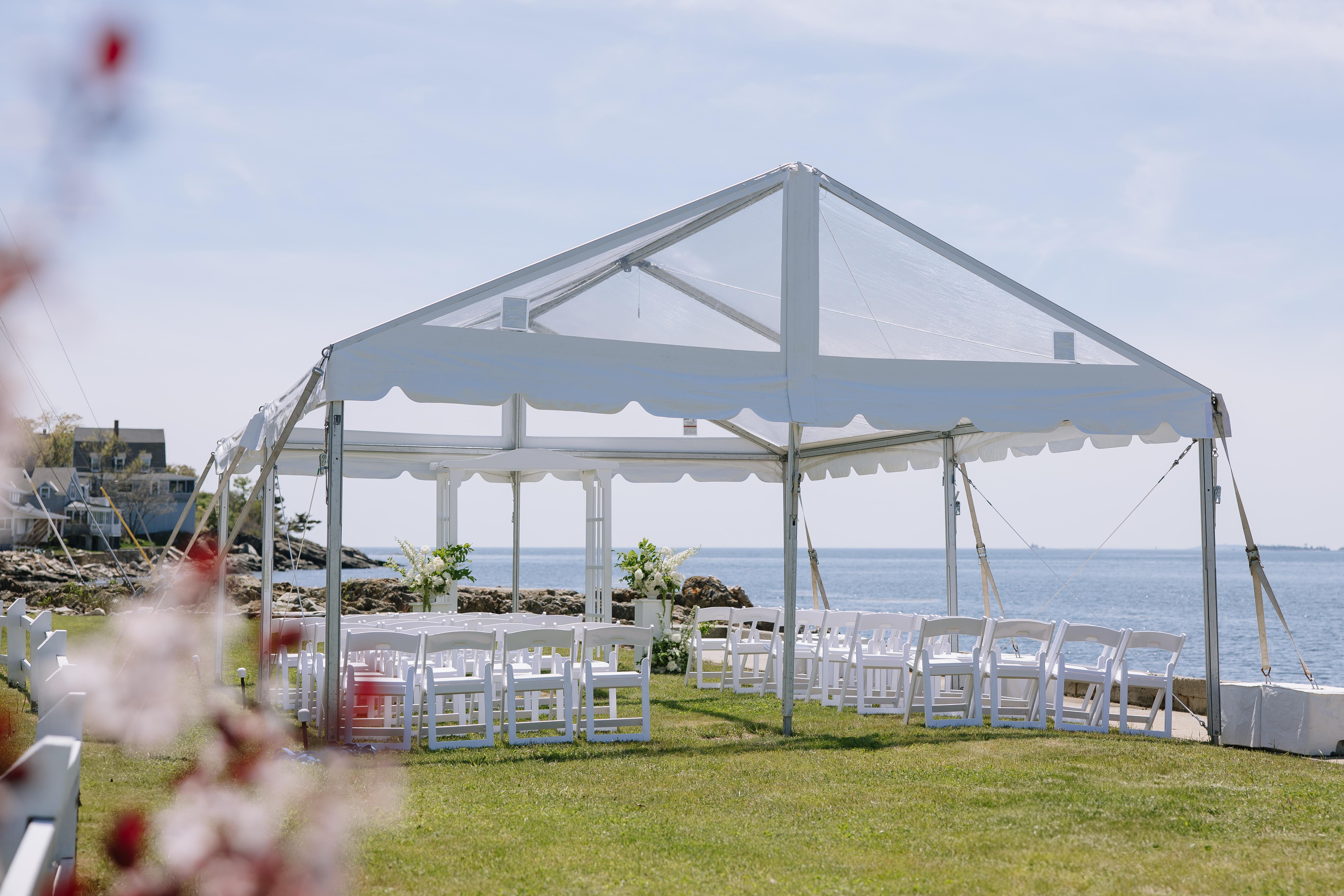 Seating for a private reception up to 80 people, or a semi-private space for 20-50 people. Waterfront views with direct access to oceanfront lawn