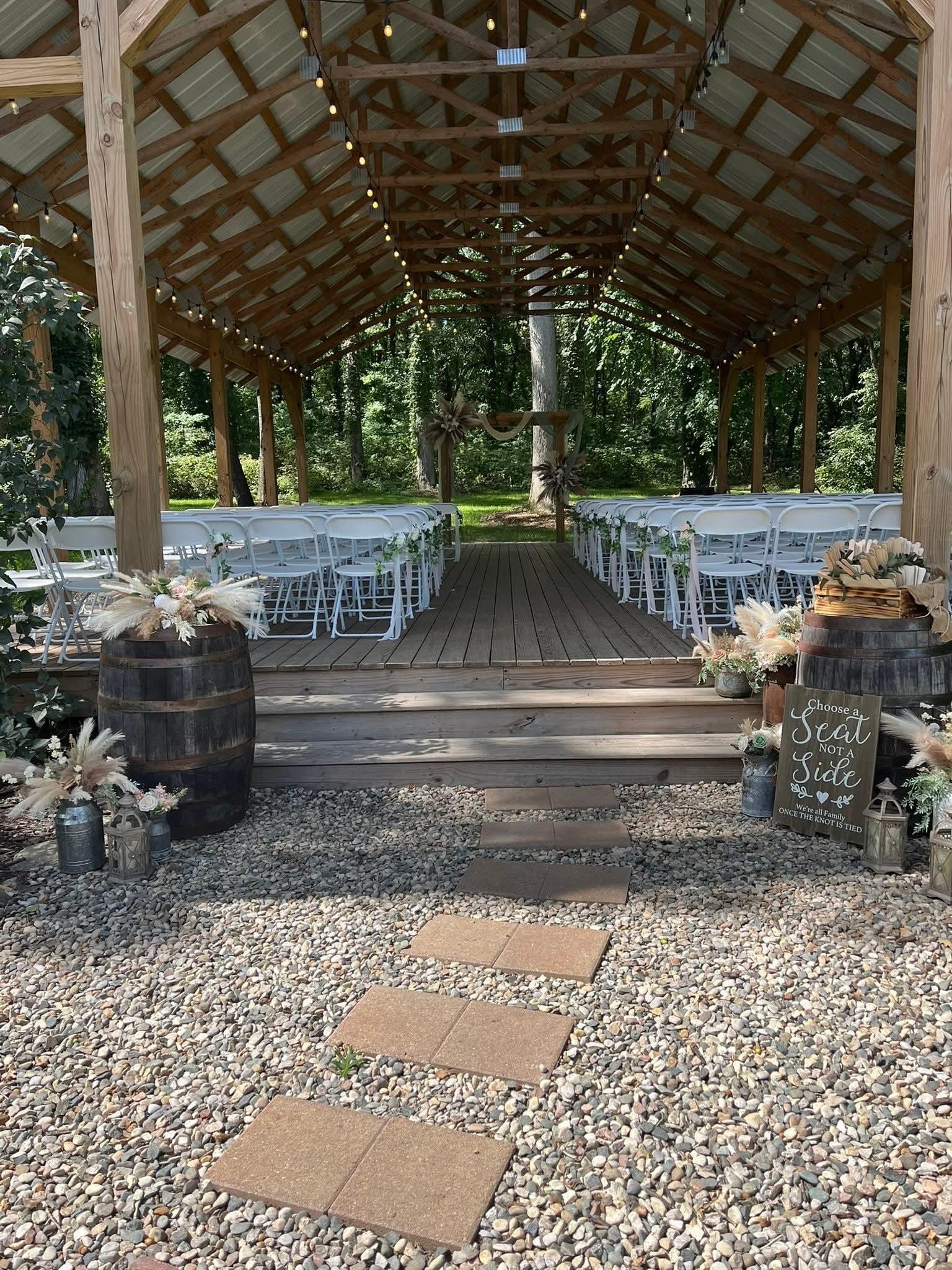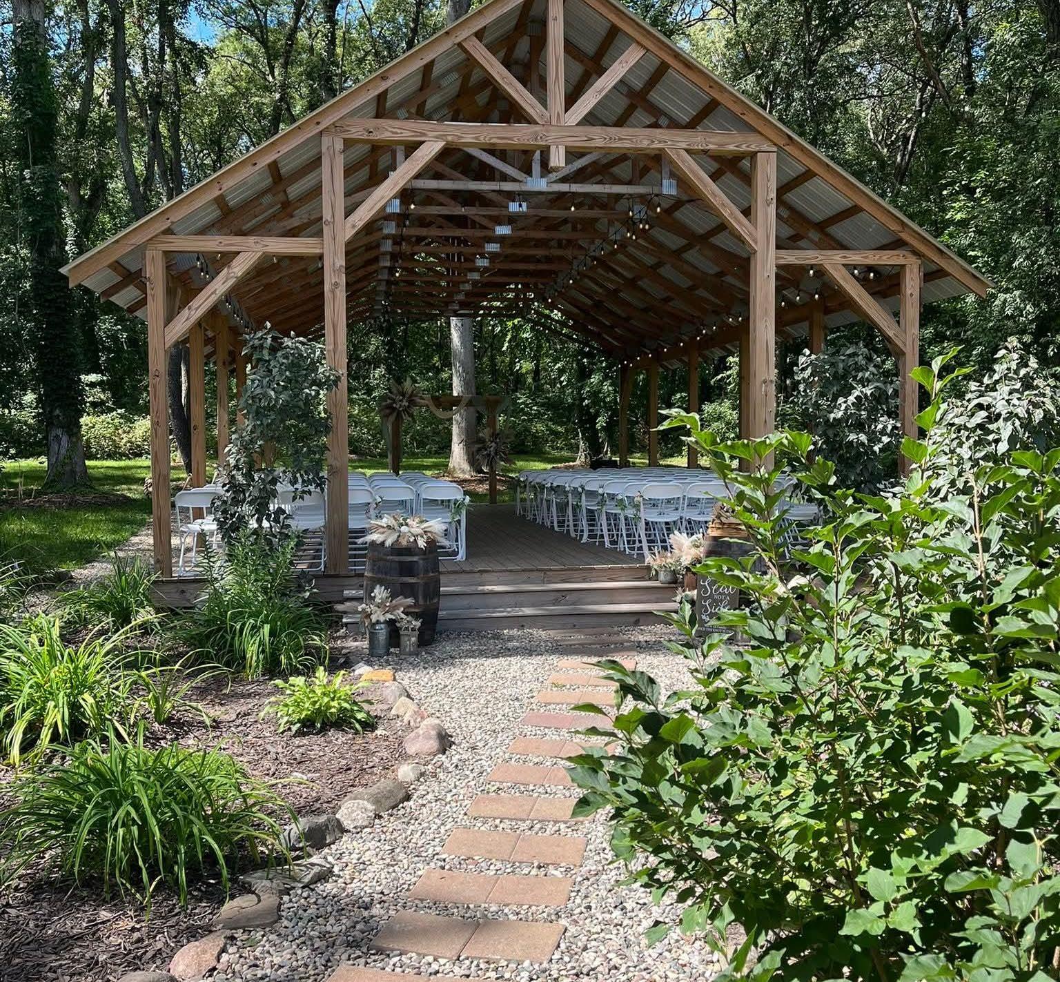 Our venue is the perfect destination for your dream wedding. The Barn has a rustic feel with all the modern amenities to make your day spectacular. The outdoor wooded pavilion offers a picturesque setting for your ceremony with views of nature. The beautiful flower garden surrounds the stone pathway leading to the pavilion. A nature lovers paradise! Set on 10 acres of beautiful woods and fields.