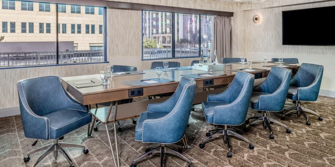 Off the first floor, adjacent to the Blu Restaurant, This intimate and modern space is characterized by its clean, contemporary design and abundant natural light. The room features a neutral and sophisticated color palette. Its professional yet warm atmosphere makes it a versatile choice for smaller meetings and receptions.