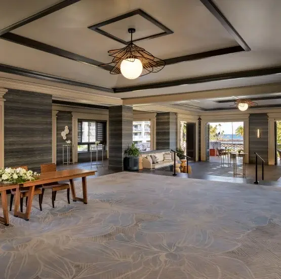 Situated on the lobby level, the Flower Rooms offer a polished and private setting for the essential behind-the-scenes moments of your big day. These intimate spaces feature elegant recessed lighting, contemporary island-inspired carpeting, and clean architectural lines. Perfectly suited for a wedding coordination office, small gatherings or a quiet sanctuary for the wedding party, these rooms provide a functional yet sophisticated environment just steps away from the resort's grander venues. Flower rooms include: Hala, ‘Ilima, Hibiscus, Maile, Pikake, Orchid