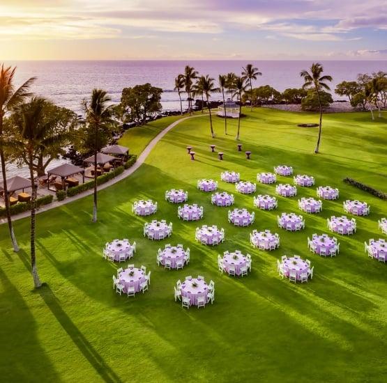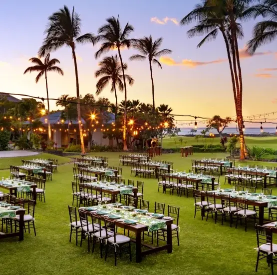 Discover an authentic Hawaiian wedding experience at the Fairmont Orchid, an award-winning AAA Four-Diamond luxury resort on the majestic Kohala Coast. Nestled on 32 oceanfront acres of lush tropical gardens and cascading waterfalls, our sanctuary features a tranquil white sand beach perfect for your celebration. Whether you envision an intimate oceanside ceremony or an extravagant gala, our dedicated team ensures every detail is infused with Aloha. From the palm-fringed Coconut Grove to our elegant ballrooms, we do the heavy lifting so you can focus on savoring every moment of your journey into forever.