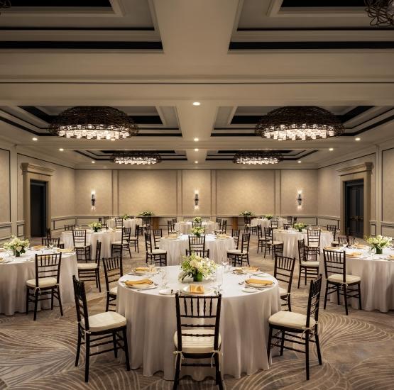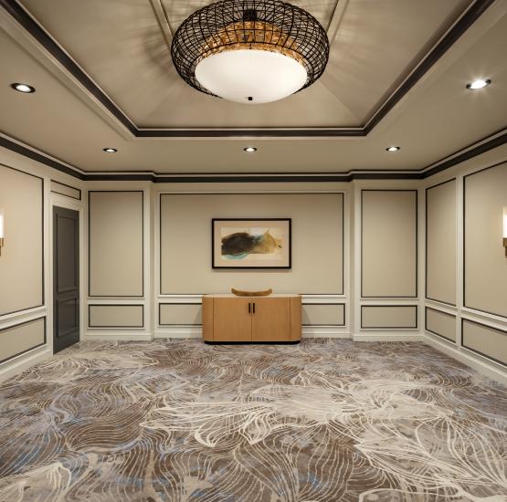 Located on the garden level of the resort, the Promenade Ballroom offers a sophisticated and tranquil setting for your wedding banquet. The space is defined by its elegant architectural details and soft, artistic carpeting that echoes the fluid beauty of the island. For a customized experience, the ballroom can be divided into three separate rooms, providing a tailored and intimate environment while maintaining a polished, upscale atmosphere for your celebration.