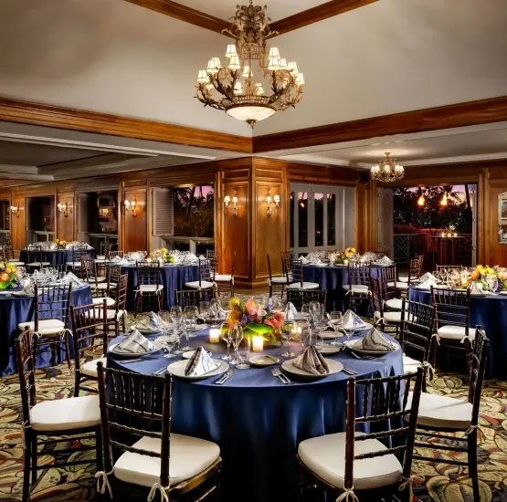 The Plaza Ballroom offers a sophisticated indoor setting that effortlessly blends versatility with island elegance. This refined space features intricate lighting fixtures and soft, tropical-inspired textures that create a warm, inviting atmosphere for any celebration. For added flexibility, the ballroom can be divided into three separate salons to suit more intimate gatherings. Large doors open directly onto the Ballroom Courtyard, inviting in the gentle Hawaiian breeze and providing beautiful views of the central fountain.