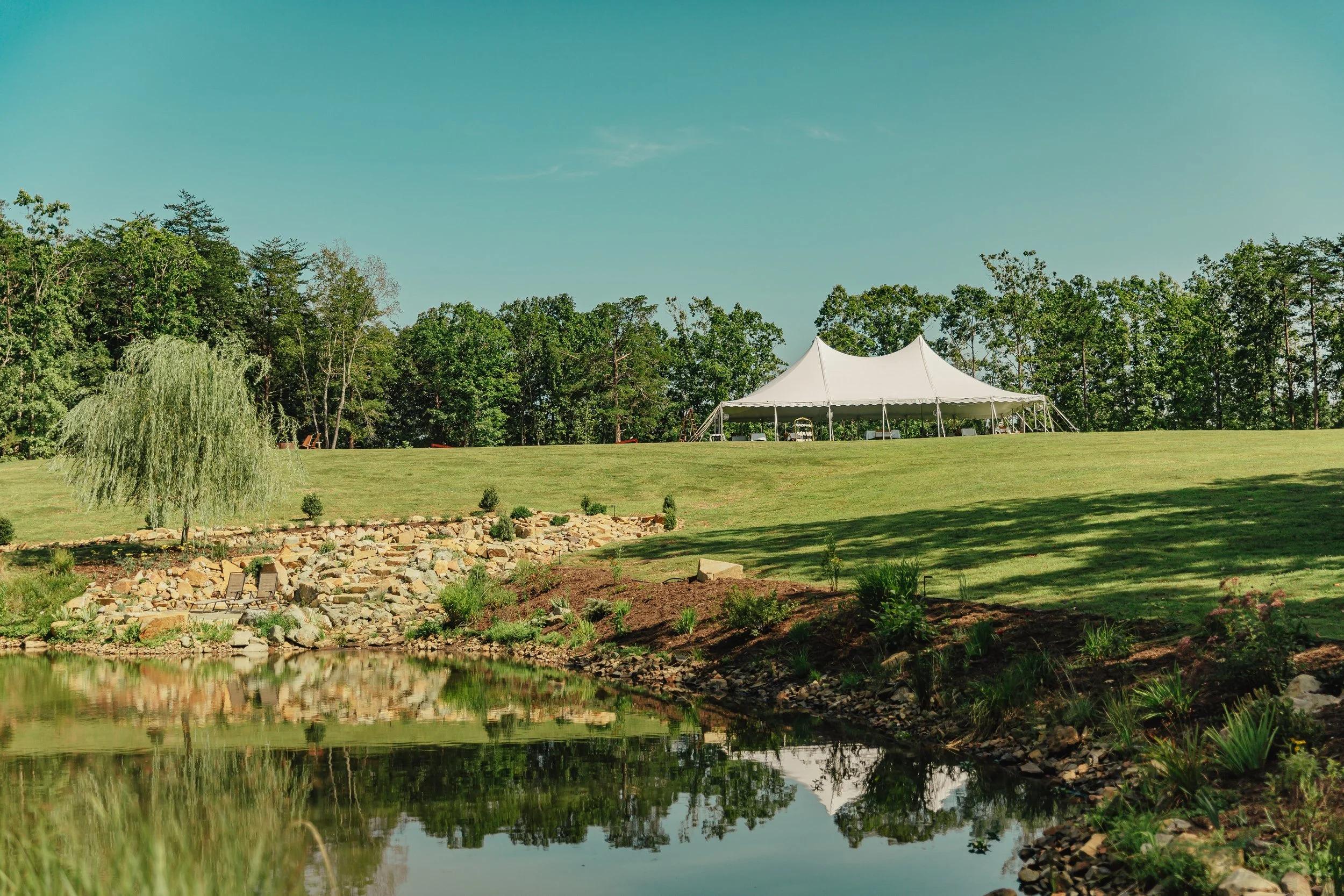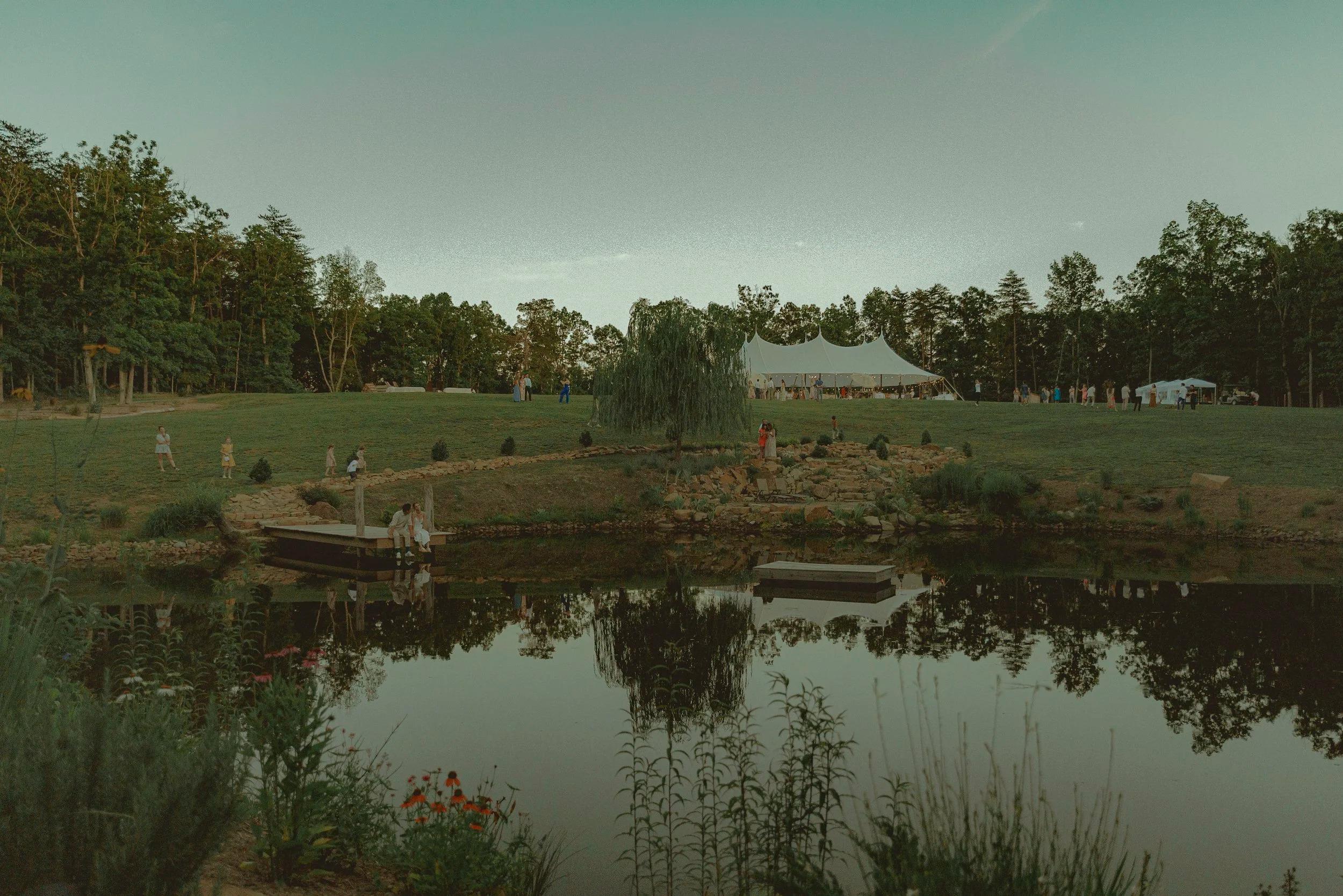 Experience the tranquil beauty of the homestead at this picturesque waterside setting. The pond offers a serene and reflective atmosphere, perfect for couples seeking a peaceful backdrop for their ceremony or a scenic spot for golden-hour portraits. Surrounded by lush greenery and the natural landscape of the fifteen-acre property, this space captures the quiet elegance of rural Virginia. Whether used as a focal point for your "I dos" or as a calming retreat for guests to wander during cocktail hour, the pond provides a timeless, natural element that enhances the romantic, grounded feel of your celebration.