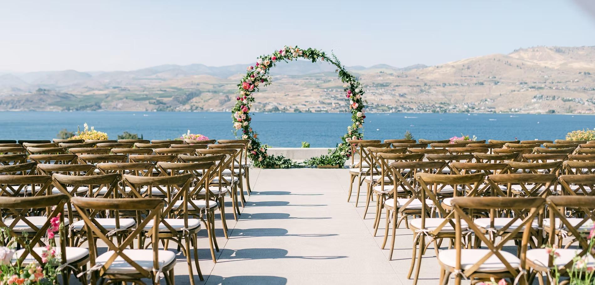 Perched above the sapphire waters of Lake Chelan, LARC Hill Vineyard Ranch is a premier destination for couples seeking a blend of rustic elegance and panoramic natural beauty. This working vineyard offers an expansive, multi-sensory backdrop for ceremonies, receptions, and rehearsal dinners. With 180-degree views of the lake and surrounding mountains, the ranch provides a secluded, romantic atmosphere that feels worlds away yet remains deeply connected to Washington’s famed wine country. Whether you’re envisioning a sun-drenched vineyard celebration or a cozy, barn-style gathering, LARC Hill delivers an unforgettable setting for every chapter of your wedding story.