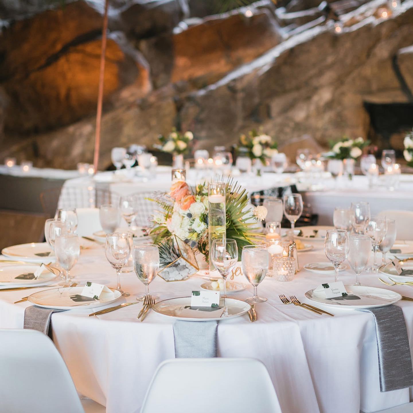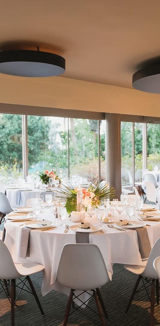The Bougainvillea Room, nestled at the foot of the San Jacinto Mountains, is the most beautifully situated venue in Palm Springs. It has been hosting special events, elegant affairs and celebrity galas for over 50 years. Erroll Flynn, Zsa Zsa Gabor, Kirk Douglas, Dinah Shore, ol' blue eyes himself, Frank Sinatra, and many others have all attended parties in this stunning location. This mid-century modern style room boasts floor-to-ceiling windows, an inlaid stone rock waterfall and fire place feature, romantic lighting and an elegance perfect for social and weddings, corporate luncheons, dinners, and cocktail receptions.