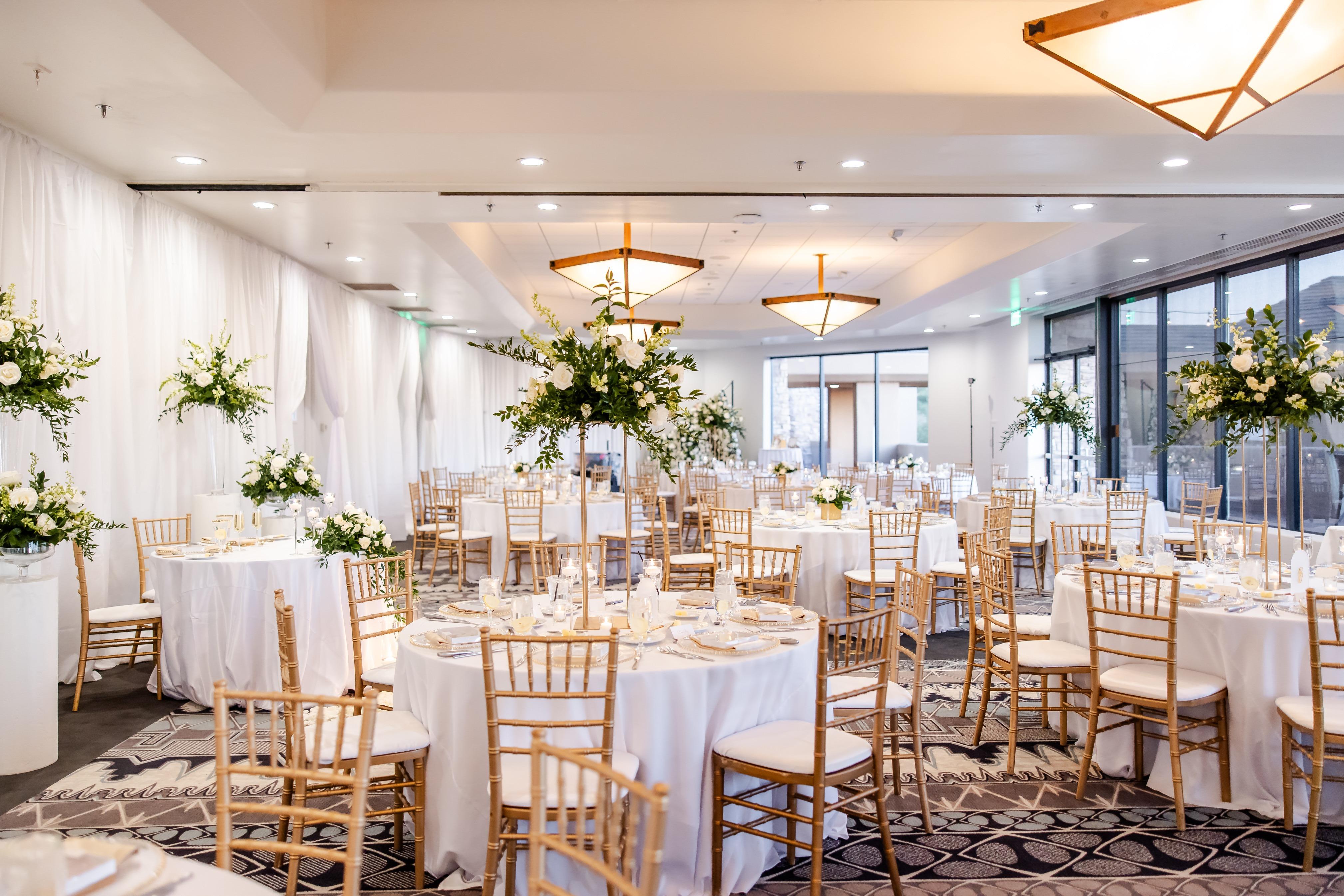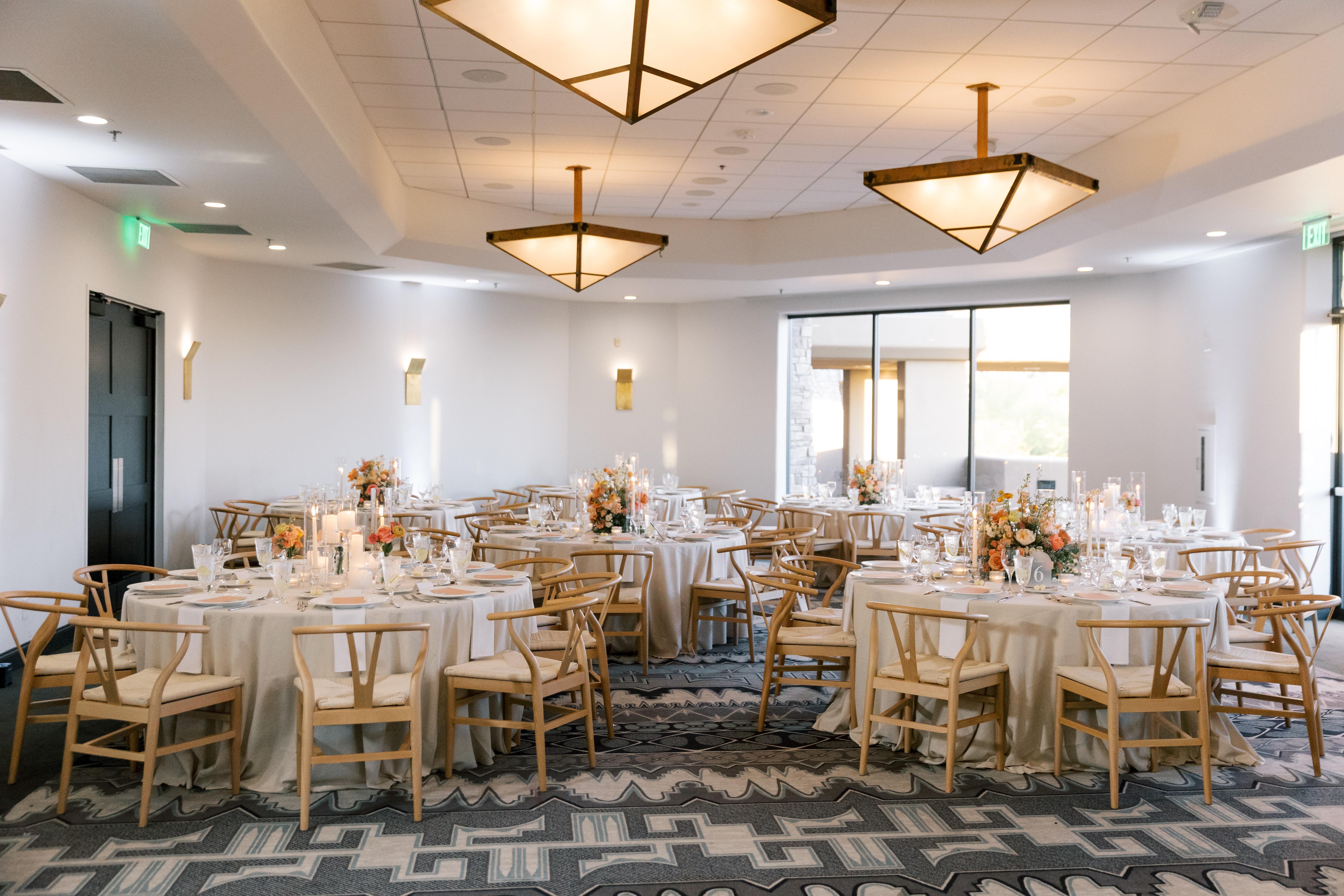 Celebrate against the majestic silhouette of Pinnacle Peak on our lush Event Lawn, an intimate outdoor sanctuary framed by giant cacti and vibrant desert flora. For your reception, the newly renovated Pinnacle Ballroom features modern chandeliers and floor-to-ceiling windows that offer panoramic views of the Sonoran landscape and twinkling city lights. Guests can transition to the Sunset Terrace for a golden-hour cocktail experience, complete with indoor-outdoor fireplaces and crisp desert air. For smaller gatherings, the Saguaro Sunset and Pinnacle Vista rooms provide a refined, modern atmosphere, while the secluded Sunset Pointe offers a truly private setting for a romantic desert soiree.