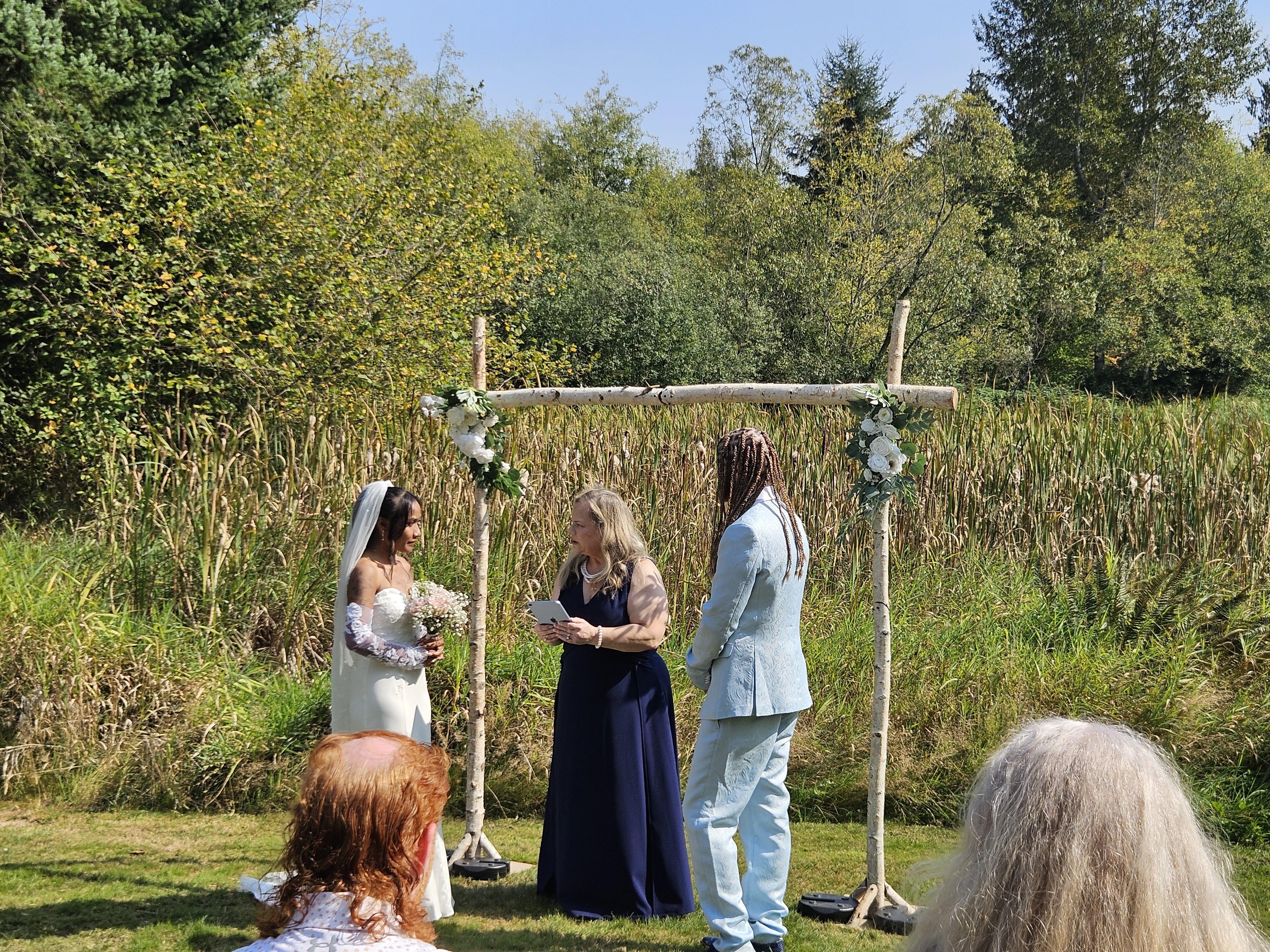 As our officiant, Grace helped us create a ceremony flow that all our guests described as “so us.” Our friends and family praised the intentionality and personalization throughout the ceremony, using words like “mindful,” “powerful,” and “different” from any other wedding they’d been to. Grace was very specific about how the ceremony was put together, and made sure everything she wove together for us was exactly what we wanted. Grace even took the time to meet with and guide us in a meditation prior to the ceremony starting, to help us calm our nerves and settle into the moment.
