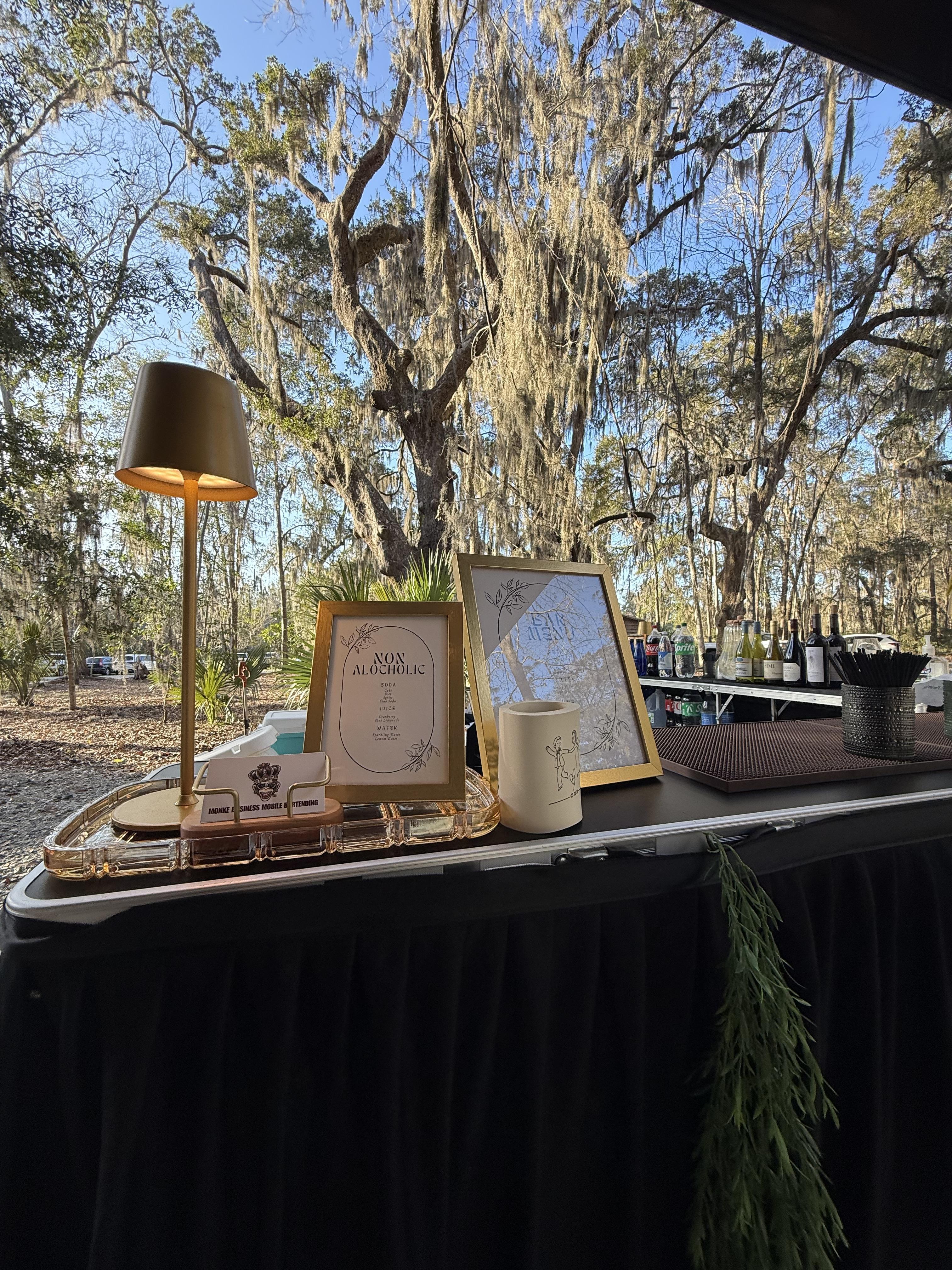 We are a fully insured & licensed mobile bartending businesss. We are so grateful to be able to serve all of GA, northern FL, & coastal SC! We just celebrated our own wedding, so we know how stressful planning a wedding can be! We hope to be a part of the process that brings in the Joy & fun, & hopefully alleviates some stress. Every wedding deserves to be celebrated!