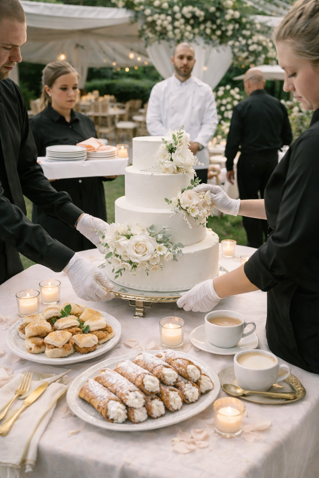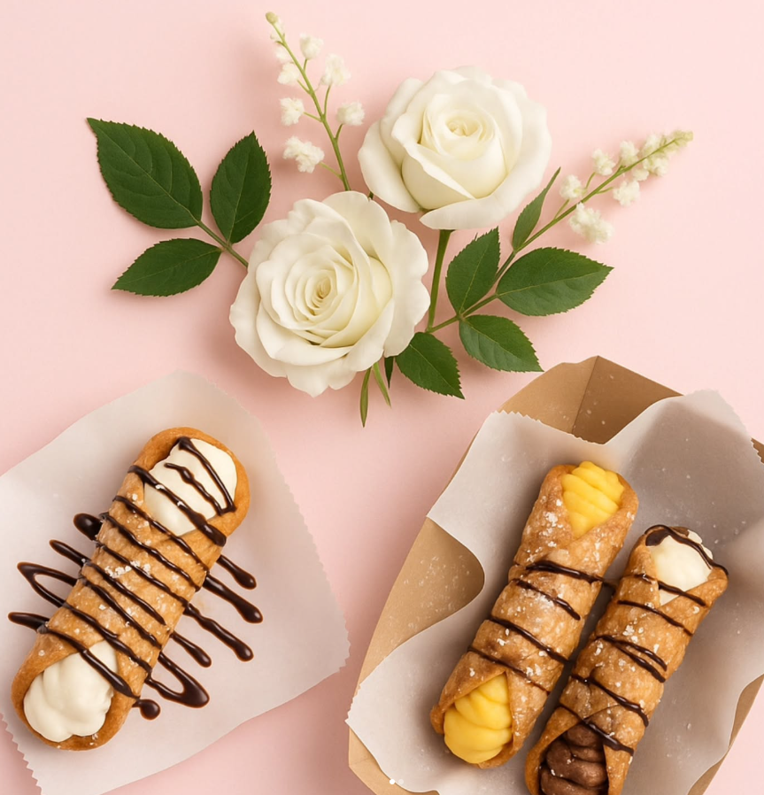 What sets us apart is our live, interactive experience. We pipe every cannoli fresh on-site, allowing guests to create their own by choosing fillings, drizzles, and toppings. It’s not just dessert, it becomes a moment your guests gather around, talk about, and remember. Combined with our high-quality ingredients and elegant presentation, we turn a classic Italian dessert into a standout wedding experience.