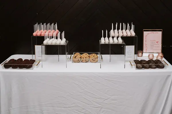 Kate Smith Soiree was a delight to have as our wedding desserts! Kate made it extremely easy to choose our wedding cake flavors, plus dessert bar, where we had a mix of tasty and beautiful cake pops and cookies. Everything was presented beautifully and disappeared quickly once guests found the dessert table! We received so many compliments on the sweets