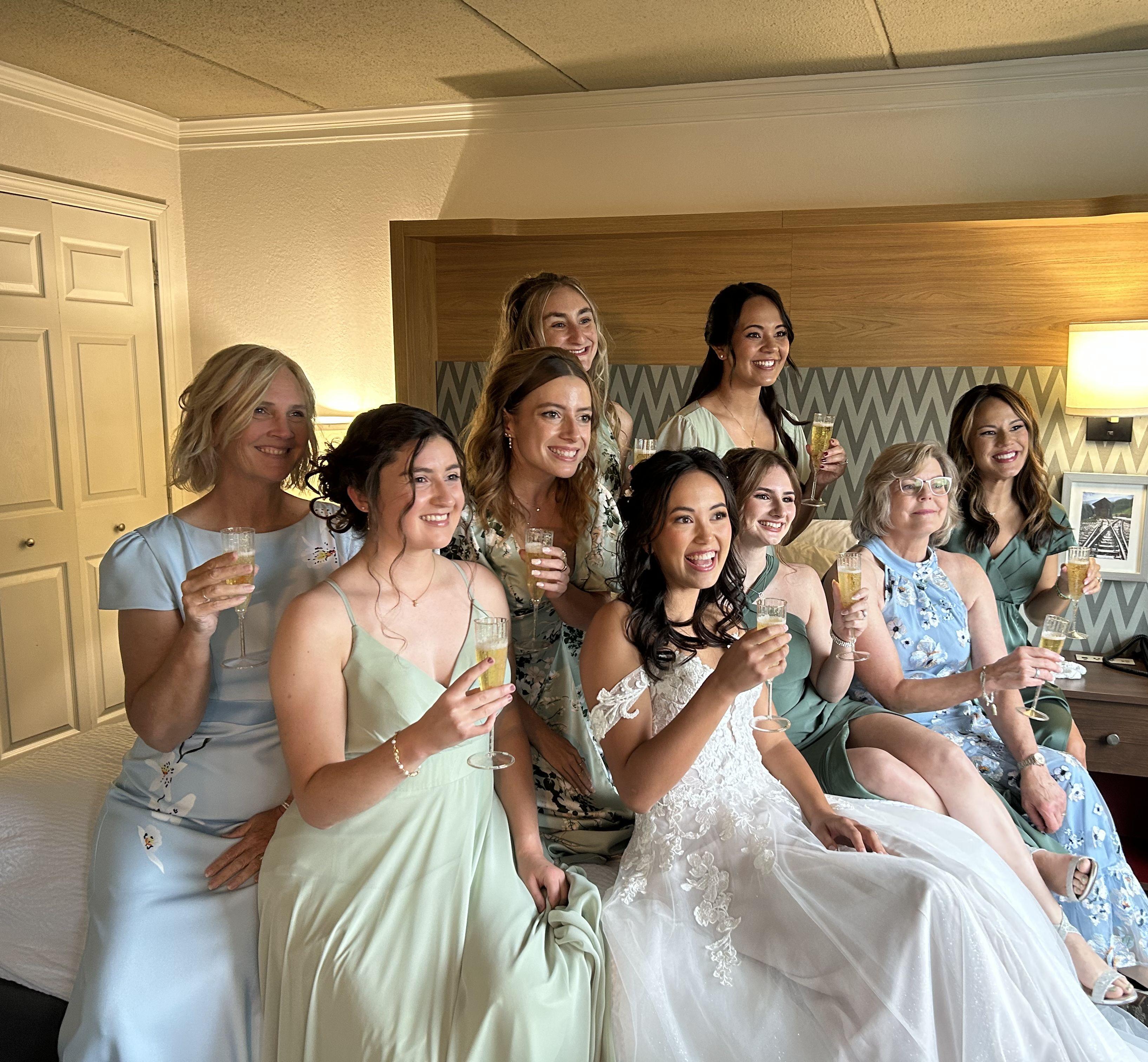 M.J. was the absolute best wedding beauty professional I could have asked for. From the very first consultation, her communication style was kind, clear, and considerate - she really took the time to understand my vision and what would make me feel most confident on my wedding day. Her skills are unparalleled, as she was able to seamlessly translate my ideas into a stunning hair and makeup look that felt true to myself. I've had my makeup done for various weddings, and M.J. is hands down the most talented stylist I've ever worked with. She's a true master at both hair and makeup, and has the ability to create a wide range of looks, from old Hollywood glam to a fresh, summery vibe. When I wasn't fully satisfied with the initial trial, she made sure to schedule another session to perfect the look. M.J.'s punctuality and perfectionist nature gave me complete peace of mind leading up to the big day, and I will be forever grateful for how beautiful and confident she helped me feel. I cannot recommend M.J. highly enough to any couple planning their wedding!