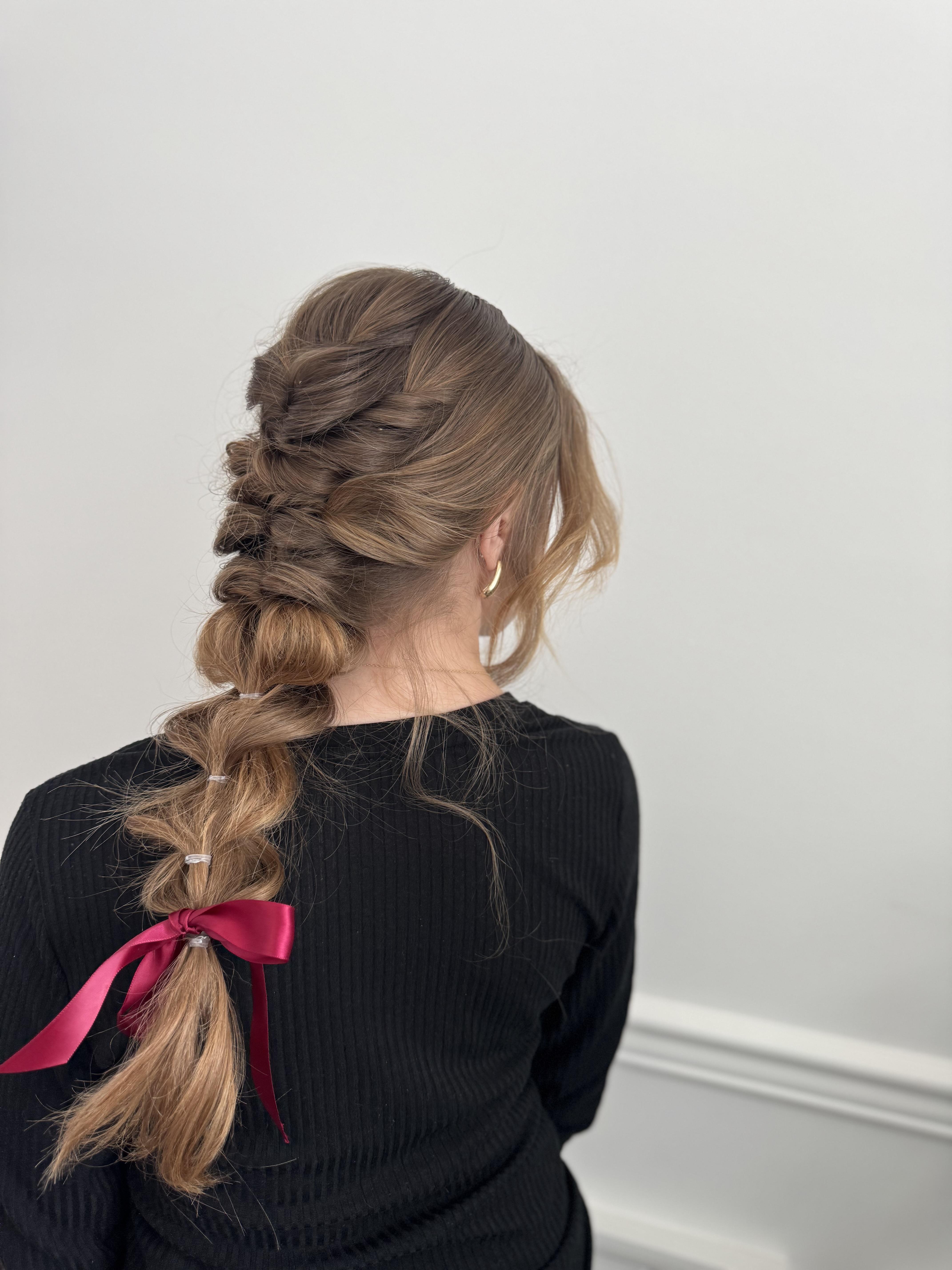 This package provides high-end, professional styling for bridesmaids, mothers, and guests, ensuring a flawless look that lasts all day. What’s Included: Custom Styling: Tailored updos, braids, or waves suited to your hair texture and the wedding theme. Professional Finish: Use of premium products for humidity resistance and maximum hold. The Final Touch: Expert placement of hair accessories to complete the look.