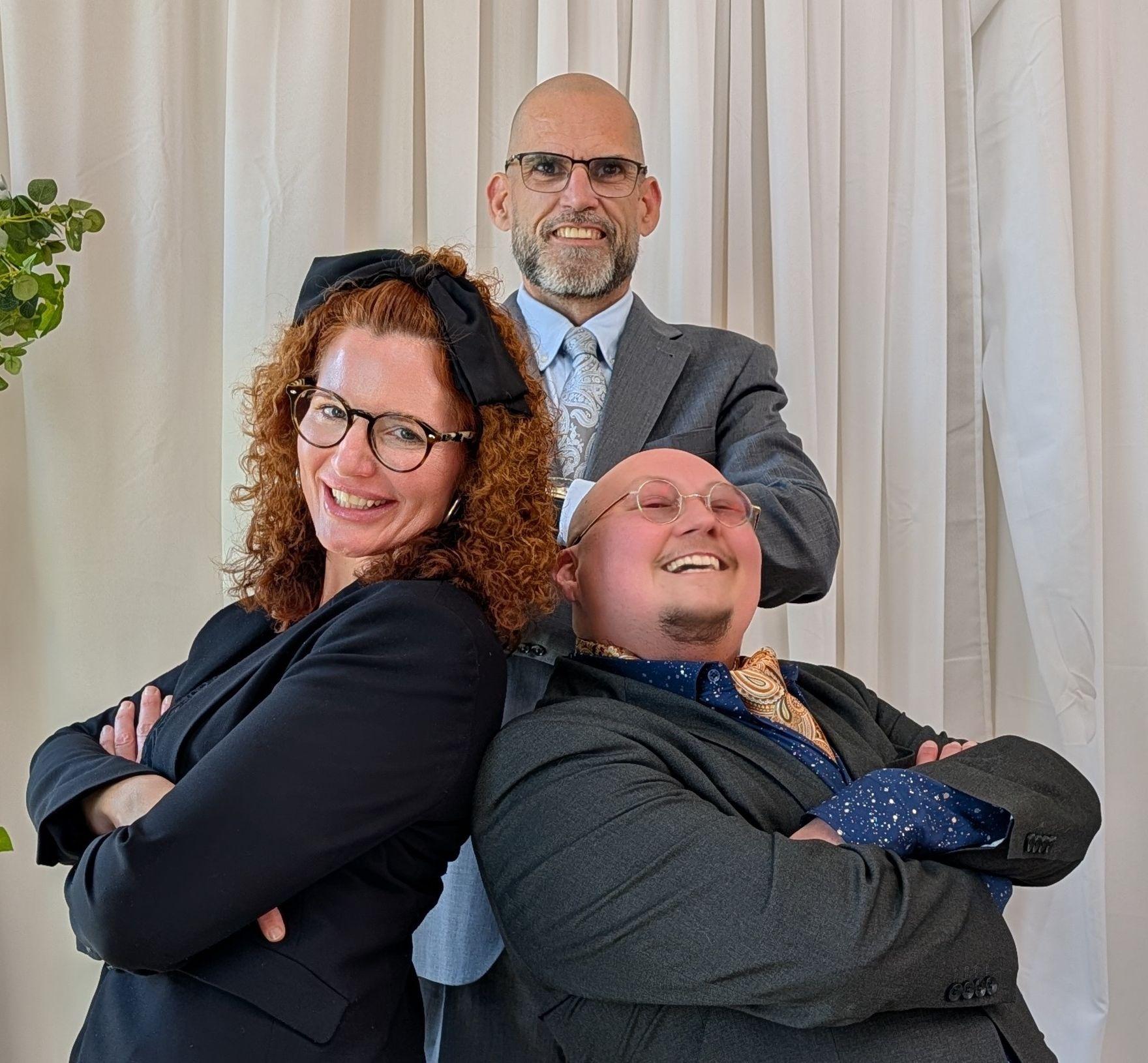 Jonathan Hill leads The Dudeist Ministers, a Cincinnati-based team of professional wedding officiants who have performed more than 600 ceremonies. Alongside him are Bridgit McMahan, a Christian officiant, and Ned Manning, Ohio’s first openly LGBT professional officiant. We are known for creativity, kindness and accepting all people. We create inclusive, and often personalized ceremonies for any couple in love. Our services include elopements, and nontraditional celebrations with a focus on authenticity, respect, and genuine connection. 513-99-HAPPY