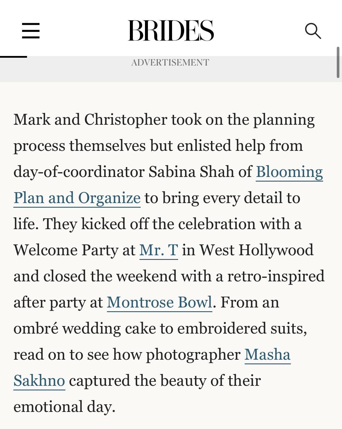 Blooming Plan and Organize (Sabina Shah) was an absolute pleasure to work with for our wedding. From the very first interaction, her communication was friendly, quick, and incredibly accommodating - she was always available to answer our questions and provide guidance. The quality of her work and the value she provided were beyond excellent. She was flexible, going above and beyond to ensure everything was perfect, never getting frustrated no matter the challenge. Sabina helped keep us calm throughout the planning process, seamlessly coordinating with all of our vendors and taking care of every little detail so we could truly enjoy our special day. She always had a smile on her face, and we are so grateful for her hard work in making our wedding day absolutely perfect. We would not have been able to do it without her!
