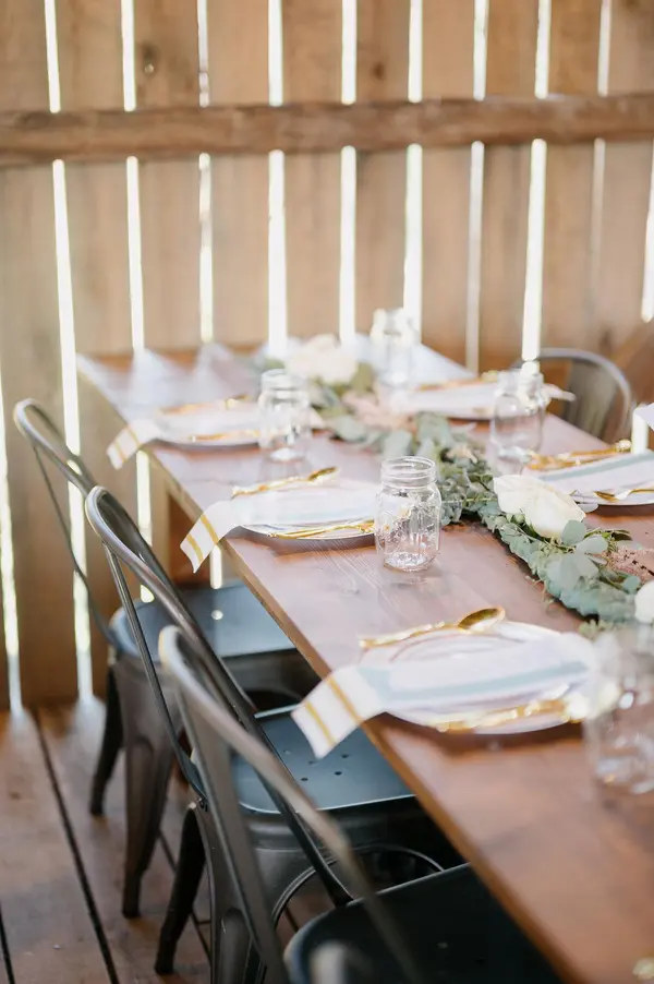 The package includes exclusive use of the barn and surrounding grounds from 1:00 PM to 11:00 PM on Sunday, along with handcrafted farm tables, metal chairs, whiskey barrels, our signature wooden arbor, and upscale on-site restrooms, ensuring your wedding day feels complete, intentional, and beautifully hosted.