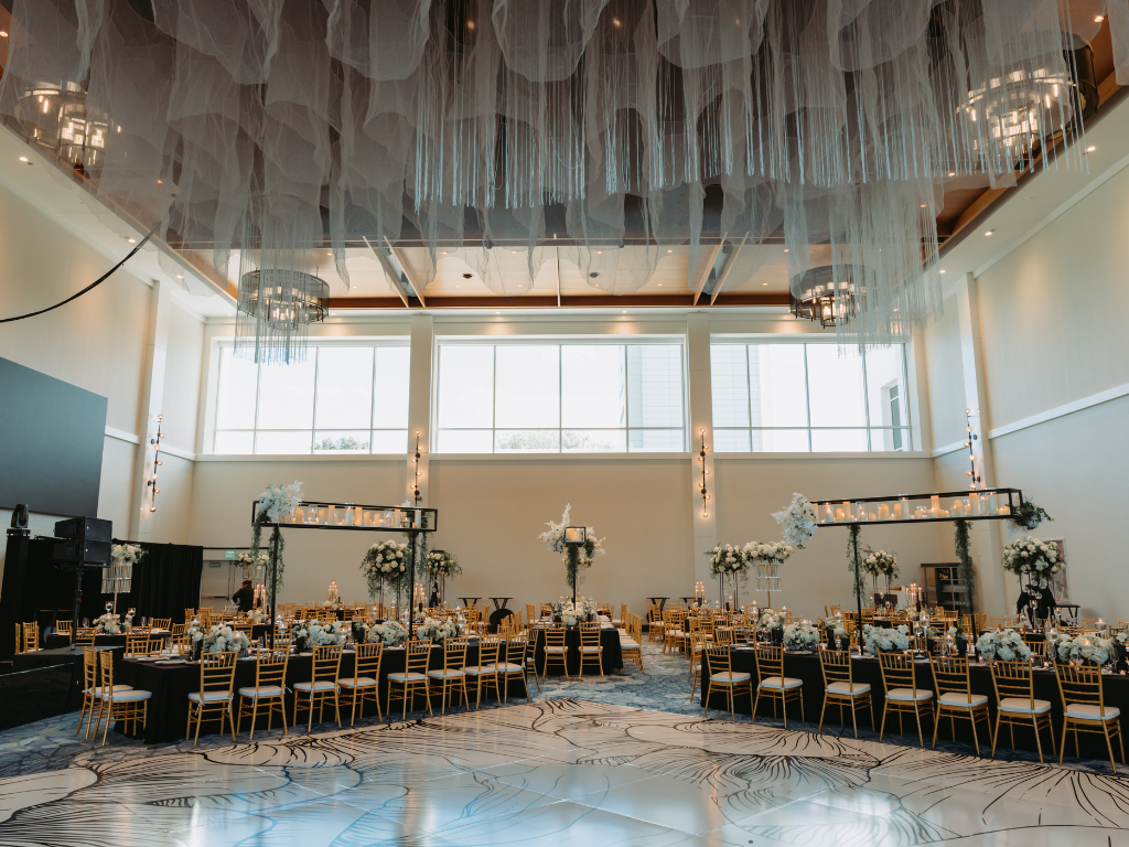 The Century Ballroom features elegant crystal chandeliers, as well as abundant natural light from the floor to ceiling glass walls and exquisitely designed retractable doors to the Outdoor Terrace. Use the entire space, or partition the room and choose Century North or Century South, depending on the size of the event. Whether hosting a wedding, tradeshow, family celebration or corporate event, the Century Ballroom provides true modern elegance.
