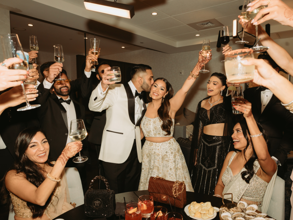 - Celebratory champagne toast at the table