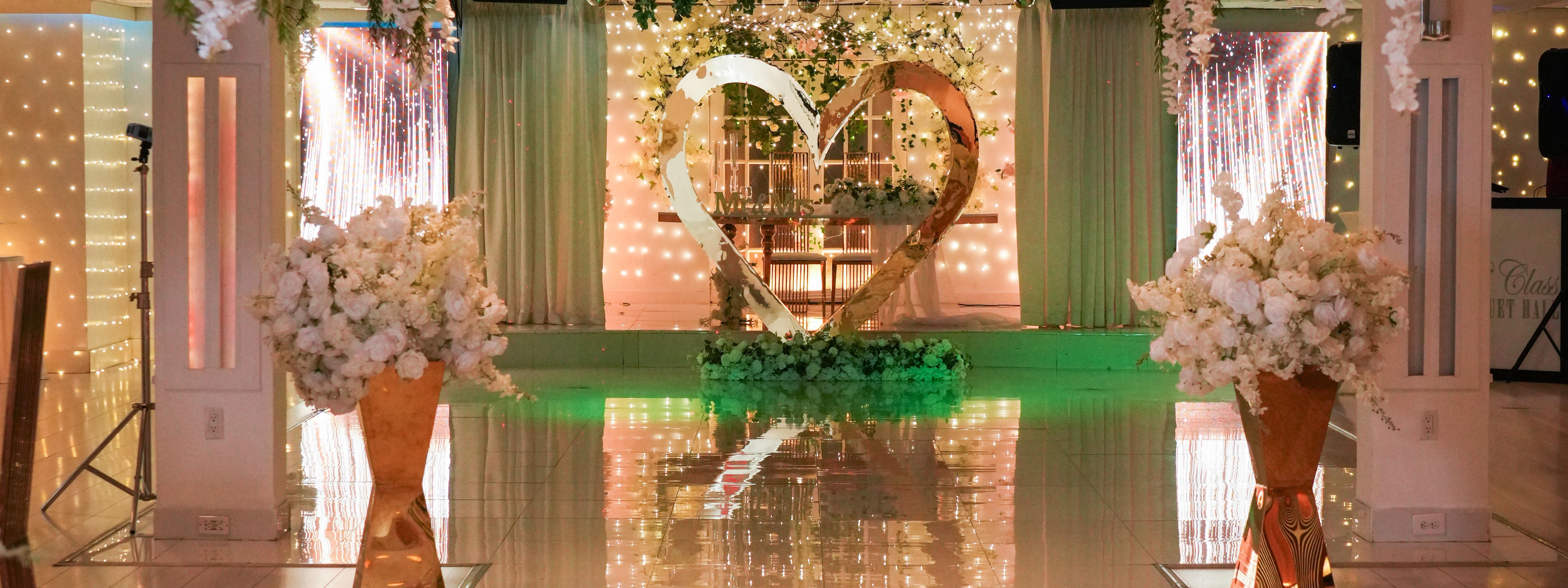 Welcome to D’Class Banquet Hall in Miami, the premier venue for unforgettable events and celebrations. Whether you’re planning a wedding, quinceañera, sweet sixteen, corporate event, or any social gathering, our luxurious venue offers full-service event planning tailored to your needs. With years of experience and countless satisfied customers, we guarantee 100% satisfaction. Explore our state-of-the-art facilities, exquisite decor, and professional services, including limousine service, full catering, advanced audio-visual support, and more. Let D’Class Banquet Hall transform your special day into an extraordinary celebration.