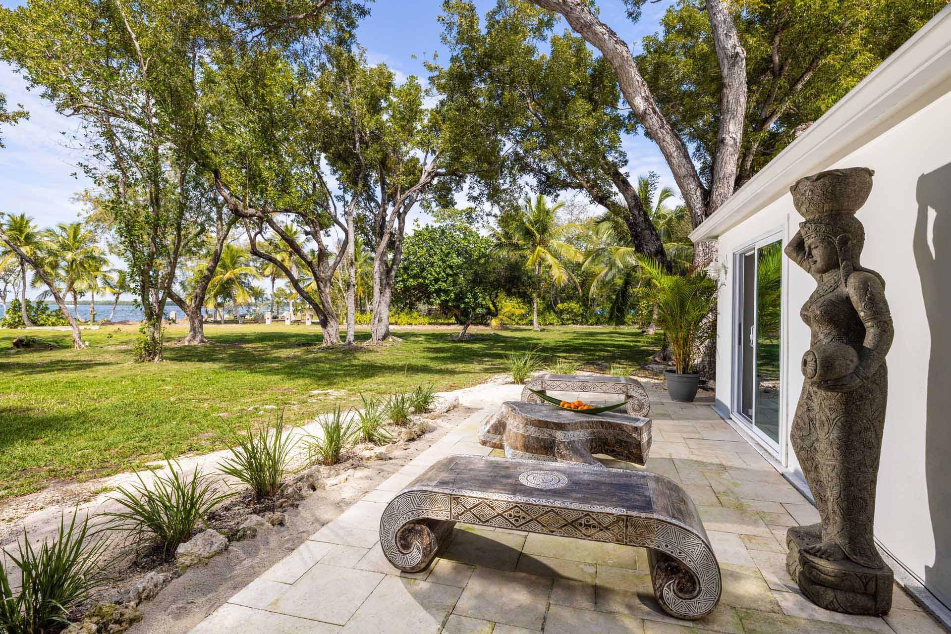 A private coastal retreat with bay views, tropical dining spaces, and relaxed Keys luxury.