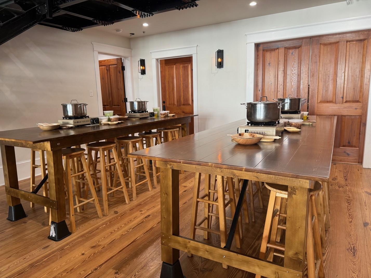 This space is specifically designed to accommodate larger-scale demonstrations and interactive classes while still maintaining the authentic "Second Line" spirit of the city.