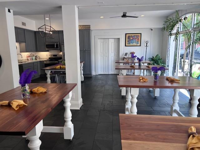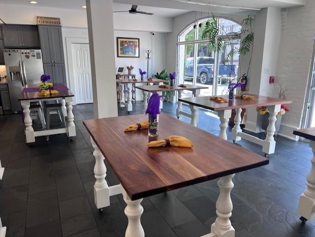 Full use of our professional demonstration kitchen, premium tables and seating, all culinary materials, and expert-led storytelling. Our packages include a multi-course meal (2 entrees and 1 dessert), curated beverage pairings, and the expertise of our chefs. Enhancements like live local painters, mobile photo booth, or Second Line parades are available upon request.