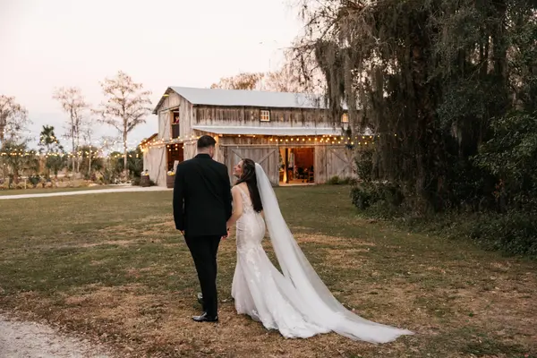 Misty Morning Barn was such a beautiful venue to have our wedding! We wanted a venue for our ceremony that had lots of greenery and trees so that we could have an outdoor ceremony amongst the nature. The barn had quite the rustic feel, with chandeliers and warm lighting, serving as a cozy memorable reception hall. Our photos outside by the trees came out beautifully, especially around sunset time, when the sun came peeking through the branches. The venue owner/operator was always very friendly and quick to respond to questions or emails; he never made us feel burdensome with our endless questions. Another detail I liked about this venue was the wooden accents: from the ceremony and reception chairs, to the sweetheart table, and the barn itself (no plastic flimsy chairs). The Bridal Suite has recently been renovated and expanded, so it was nice to have an even bigger bridal suite than what I had initially signed up with; there was plenty of space for myself and my 5 bridesmaids, plus a few others. Additionally, it was air conditioned and remained cold inside the entirety of the day, which is essential in SWFL. The beauty, trees, and openness with this venue is endless, it doesn't need much decoration as it already serves enough decor with the trees and the barn alone! Thank you Misty Morning Barn for having us!