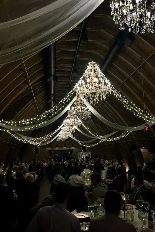 This was the very first wedding venue I toured and I immediately knew I was going to book it for my winter wedding! The chandeliers, spiral staircase, and elegant decor just had me sold. Andrea and the Sweeney barn management team are just amazing — quick responses and so so helpful! They have an entire closet of decor items that you can use like lanterns, fairy lights, easels, and more! They also put me at ease with their expertise on hosting weddings and amazing team of preferred vendors.