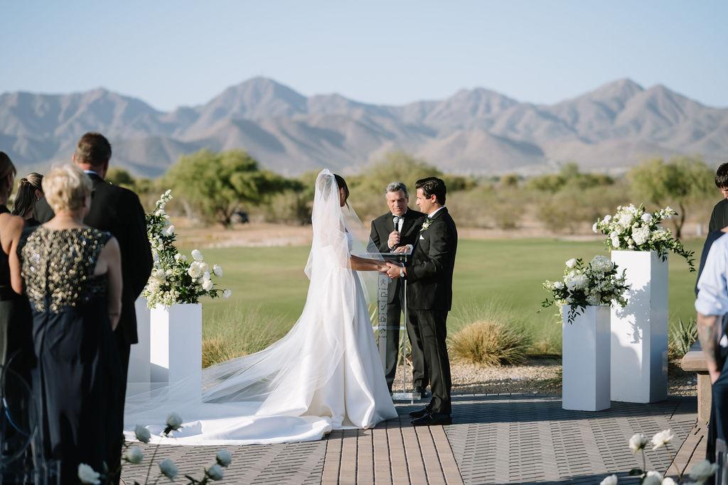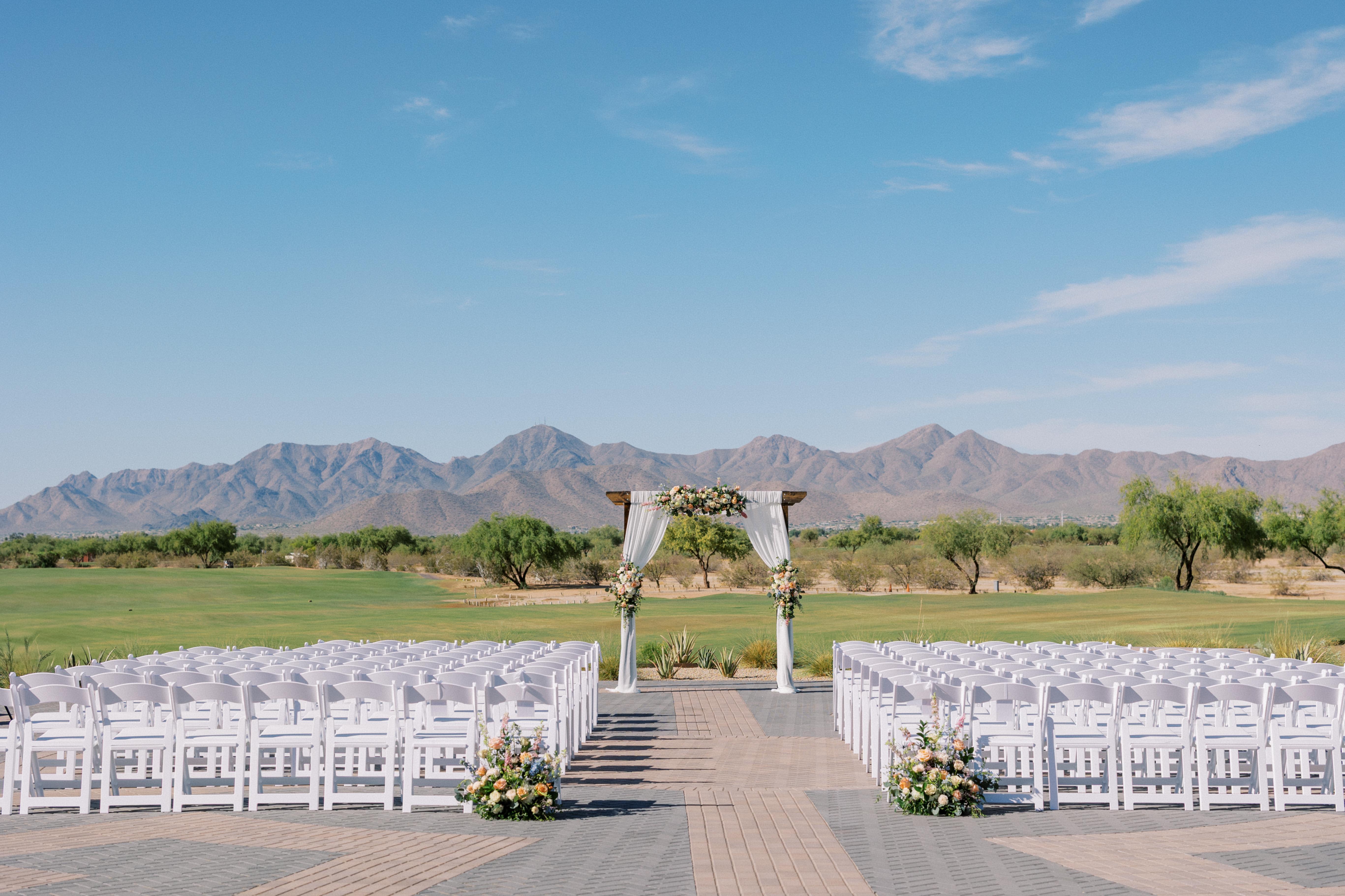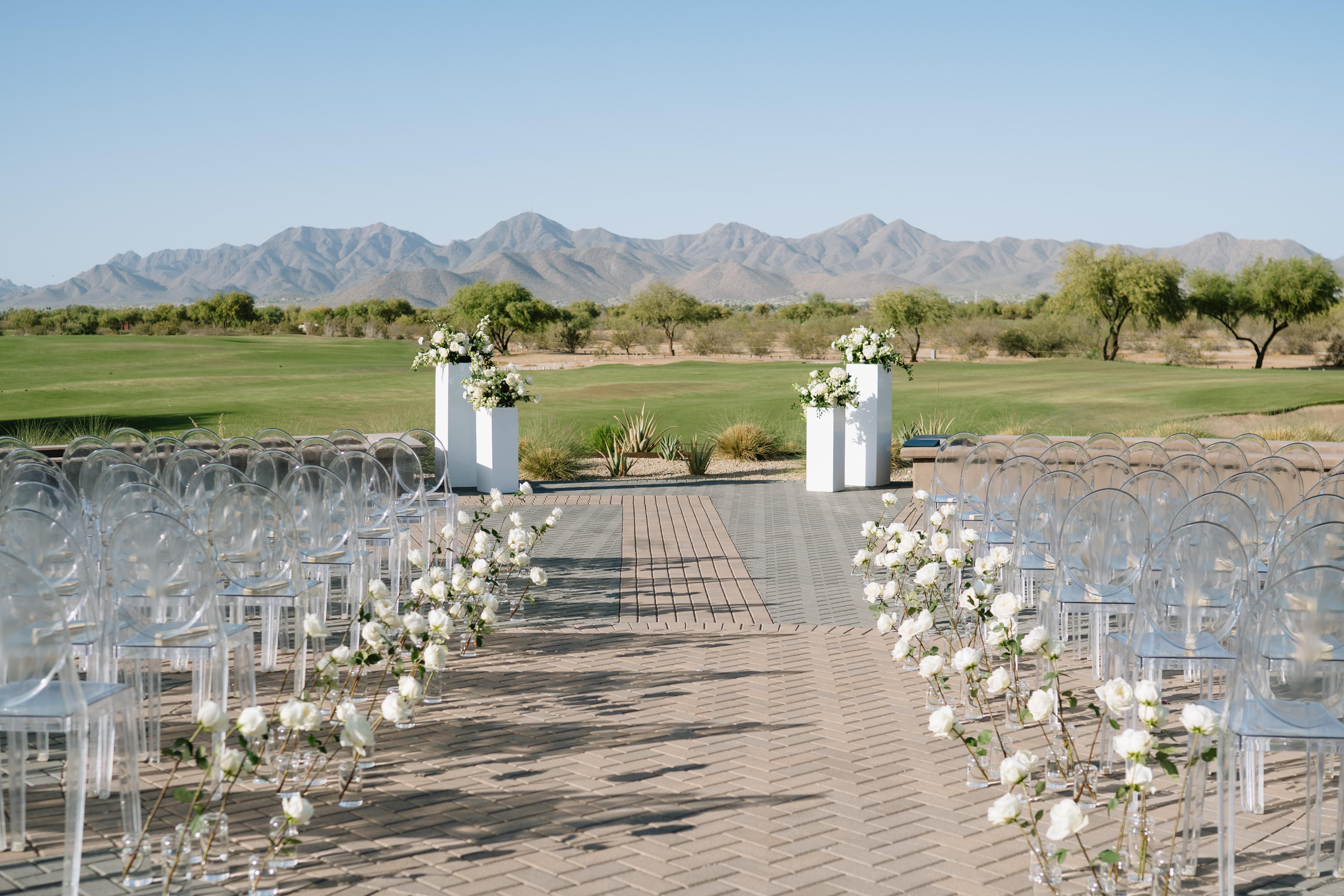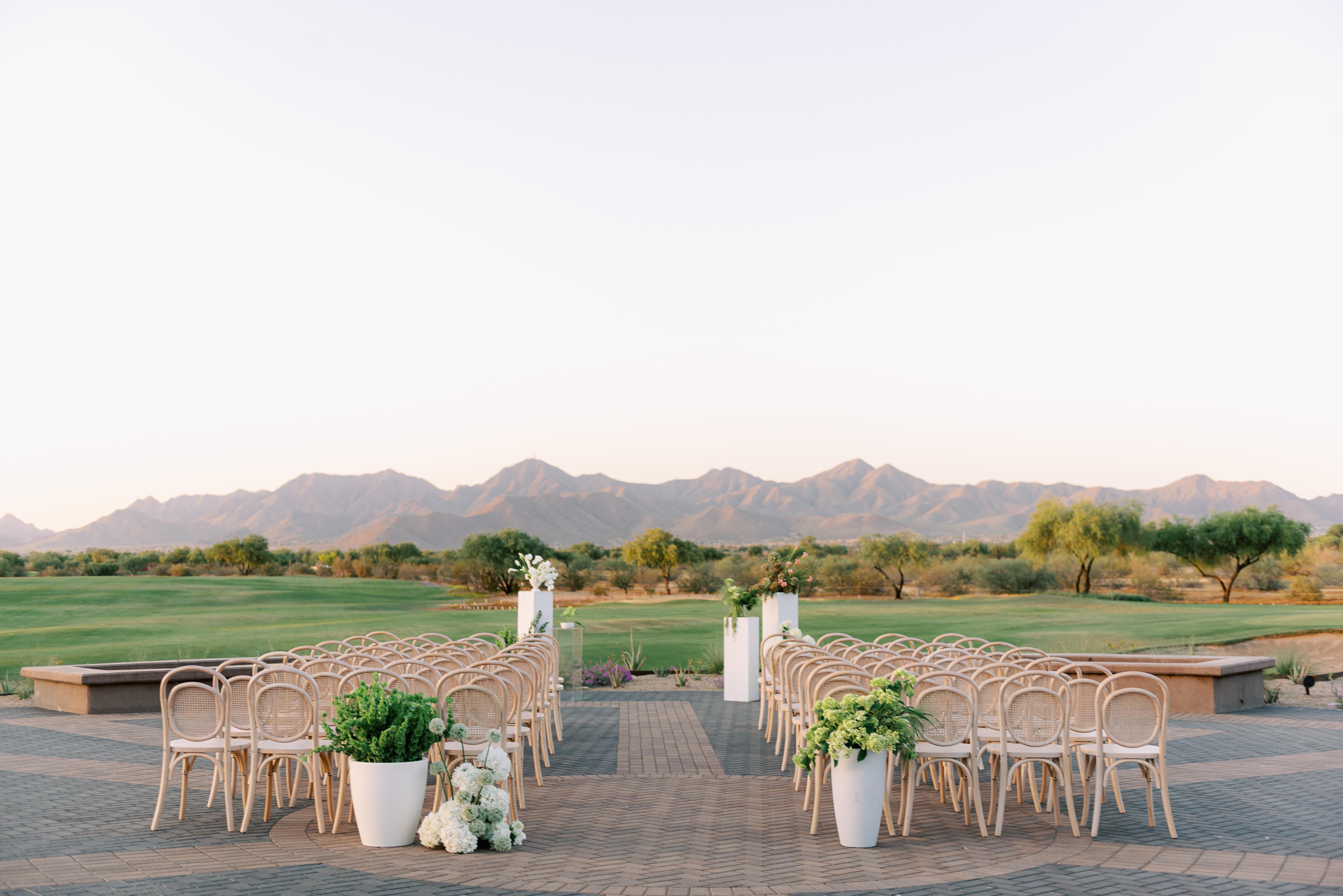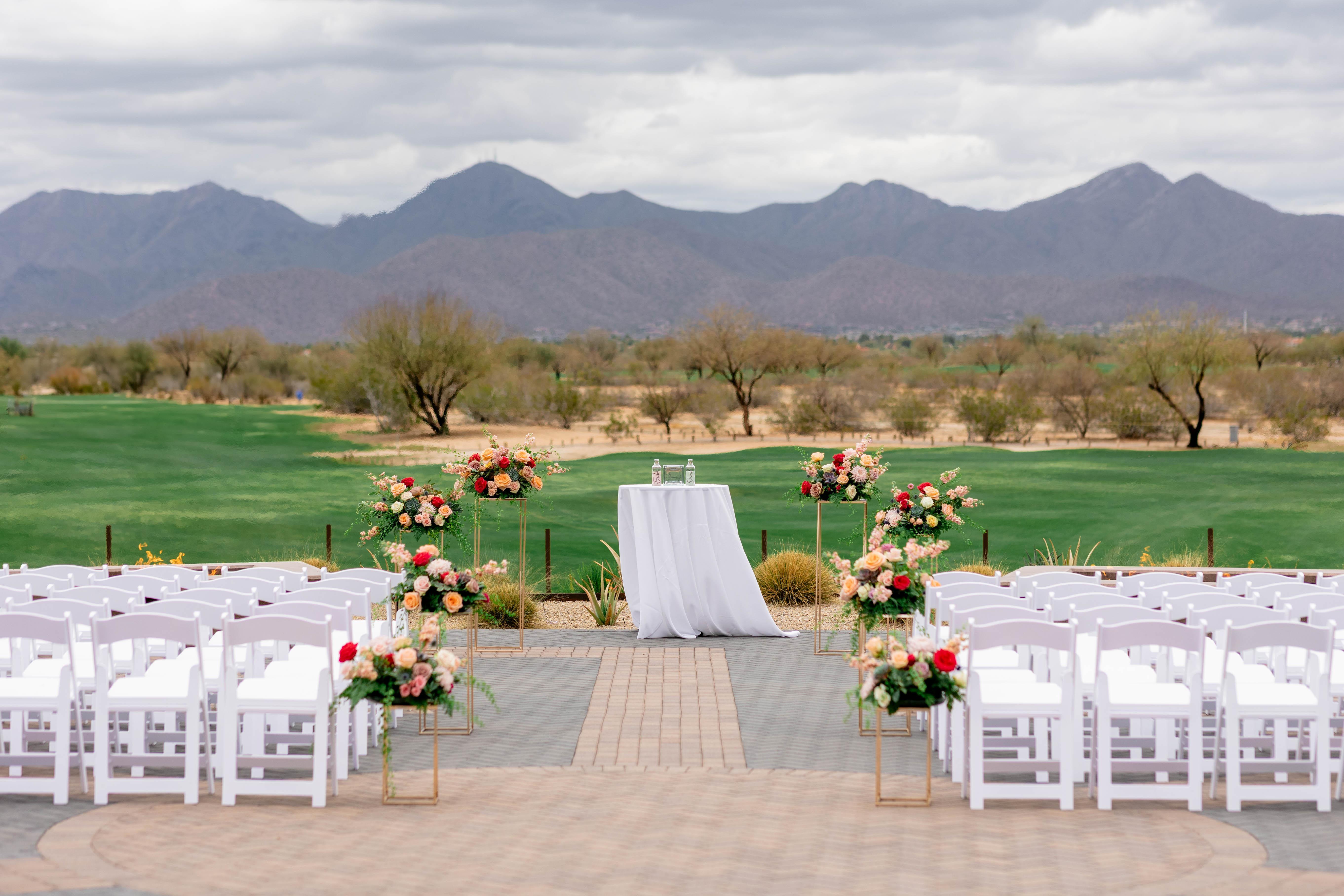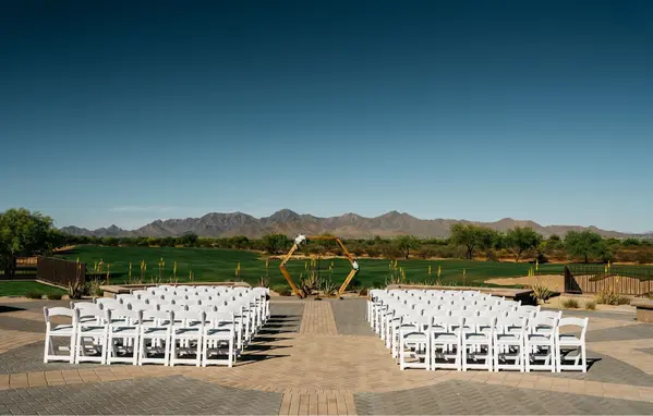 Exchange your vows overlooking lush fairways and the stunning backdrop of the McDowell Mountains. Our ceremony site offers a beautifully manicured setting with sweeping golf course views, creating a serene and unforgettable atmosphere for your “I do.
