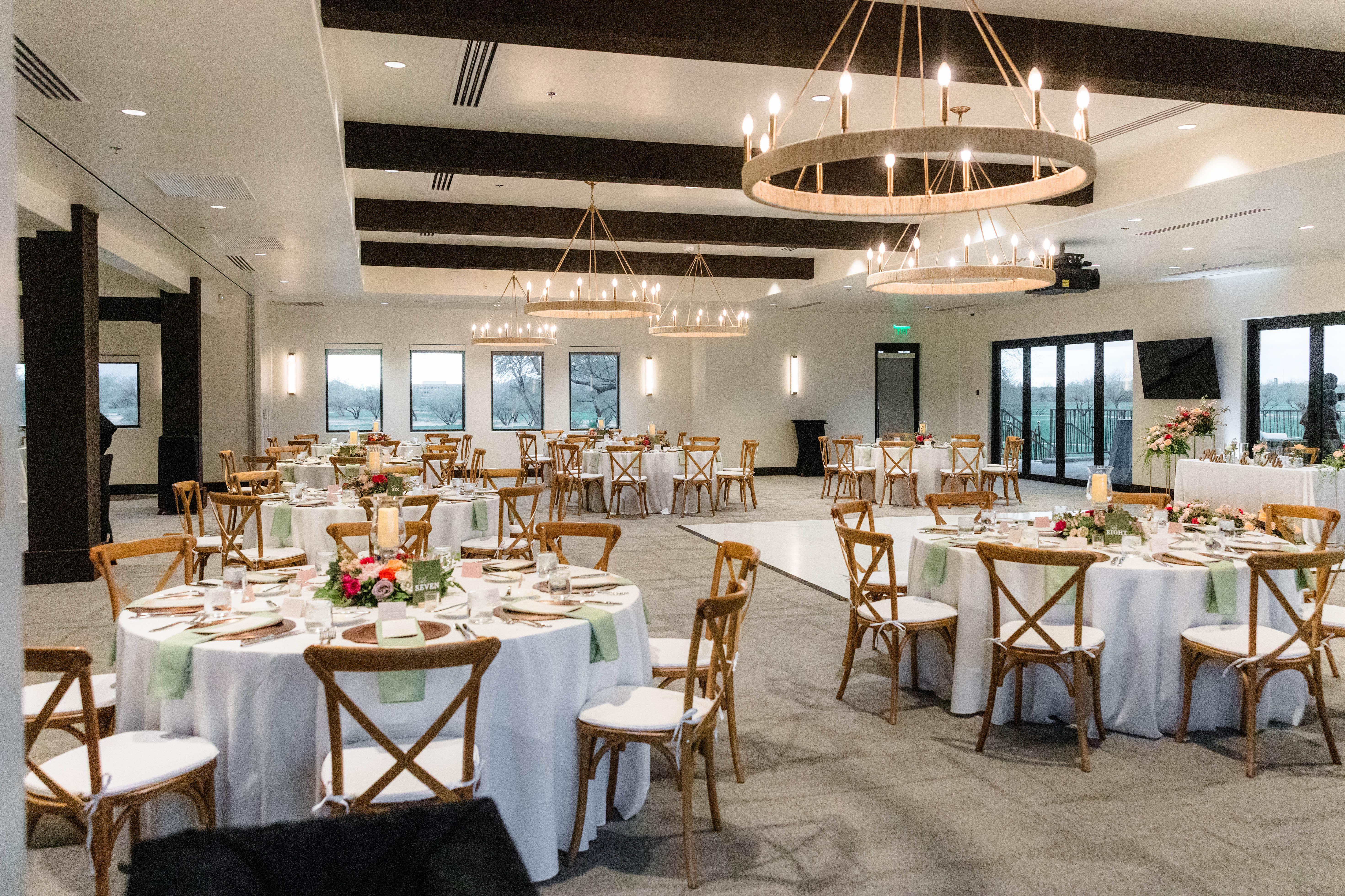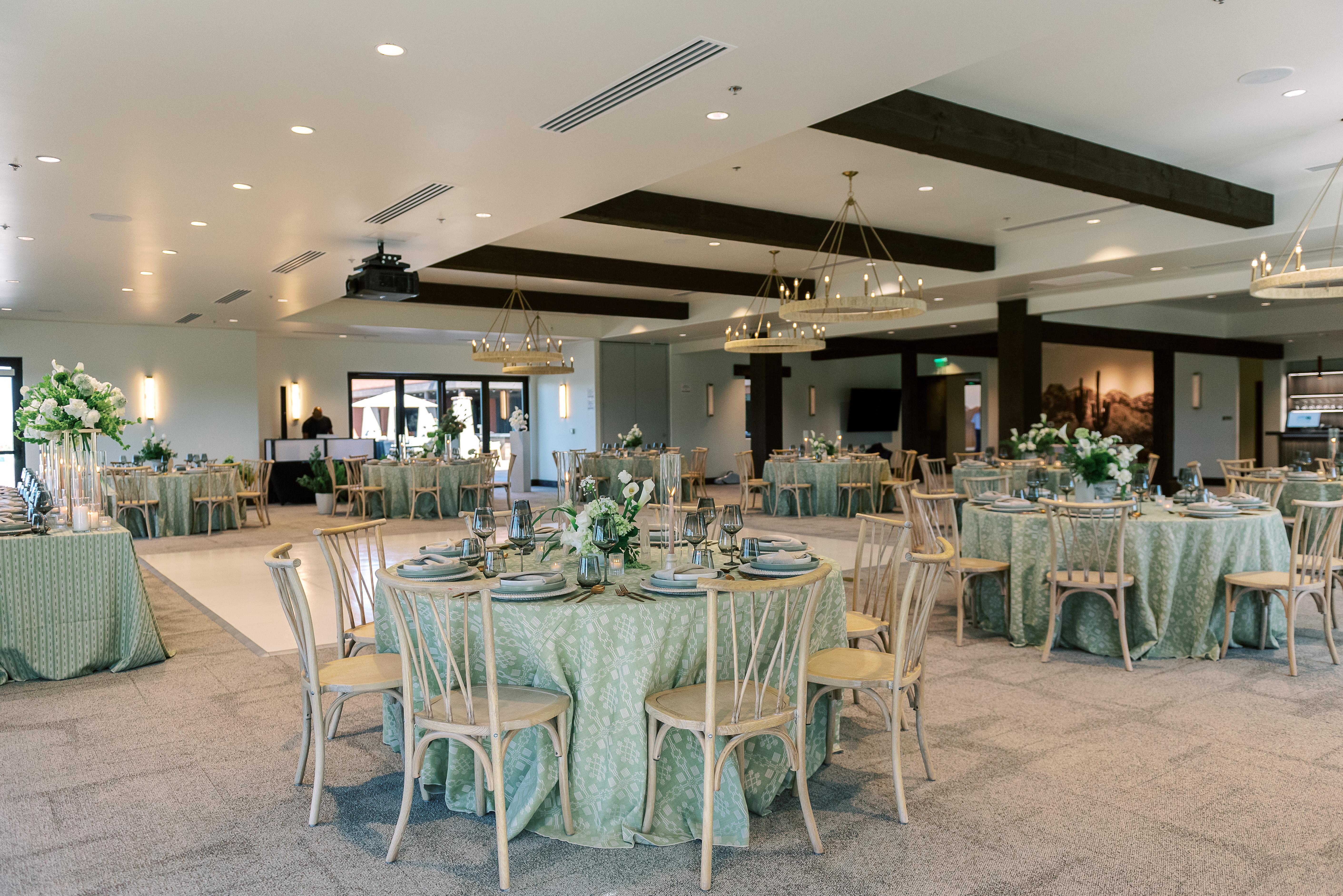 Our patio offers a beautiful open-air setting overlooking lush fairways and stunning mountain views. Perfect for cocktail hour or mingling under the Arizona sky, it creates a relaxed and picturesque atmosphere for your guests to enjoy