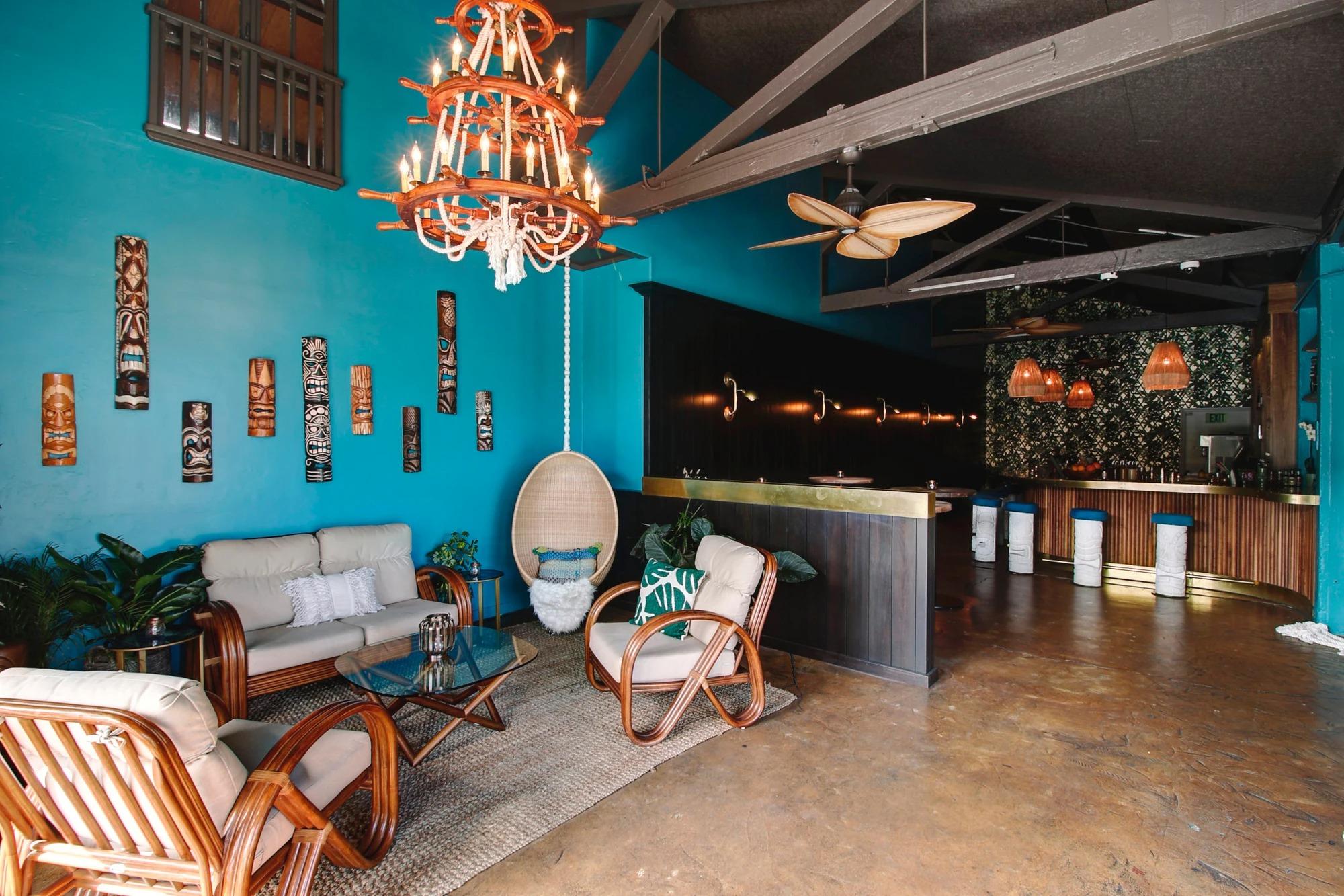 Test Pilot offers a seamless blend of indoor and outdoor coastal charm. The interior features a sophisticated nautical aesthetic, complete with artisanal tiki touches and a world-class bar as its centerpiece. For more intimate gatherings, the dedicated Sea Wolf room provides an exclusive sanctuary for your guests to mingle over hand-crafted libations. The space flows naturally, inviting guests to transition from the curated indoor lounge to the sun-soaked spirit of the neighborhood outside. It is an ideal setting for high-energy mixers, rehearsal cocktails, or a celebratory send-off.