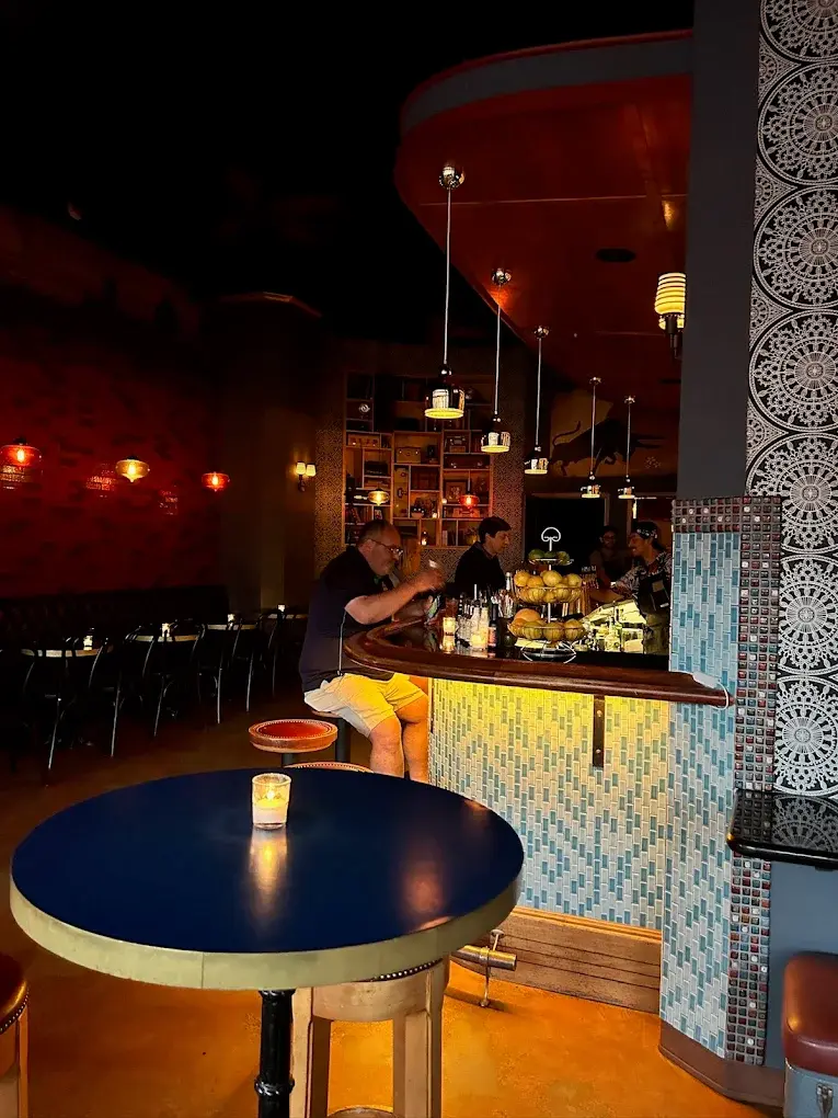 The Good Lion offers a stunningly curated interior inspired by the coastal charm of South-West Europe and Mediterranean Africa. The space features an artful blend of modern elegance and historic Santa Barbara soul, highlighted by mood lighting, lush textures, and a mesmerizing back bar. This versatile setting is designed for seamless socializing, allowing guests to mingle comfortably while enjoying a weekly rotating menu of farm-to-glass cocktails. From the vibrant energy near the bar to the cozy, tucked-away corners, the atmosphere transitions effortlessly from a refined afternoon gathering to a high-energy late-night celebration.