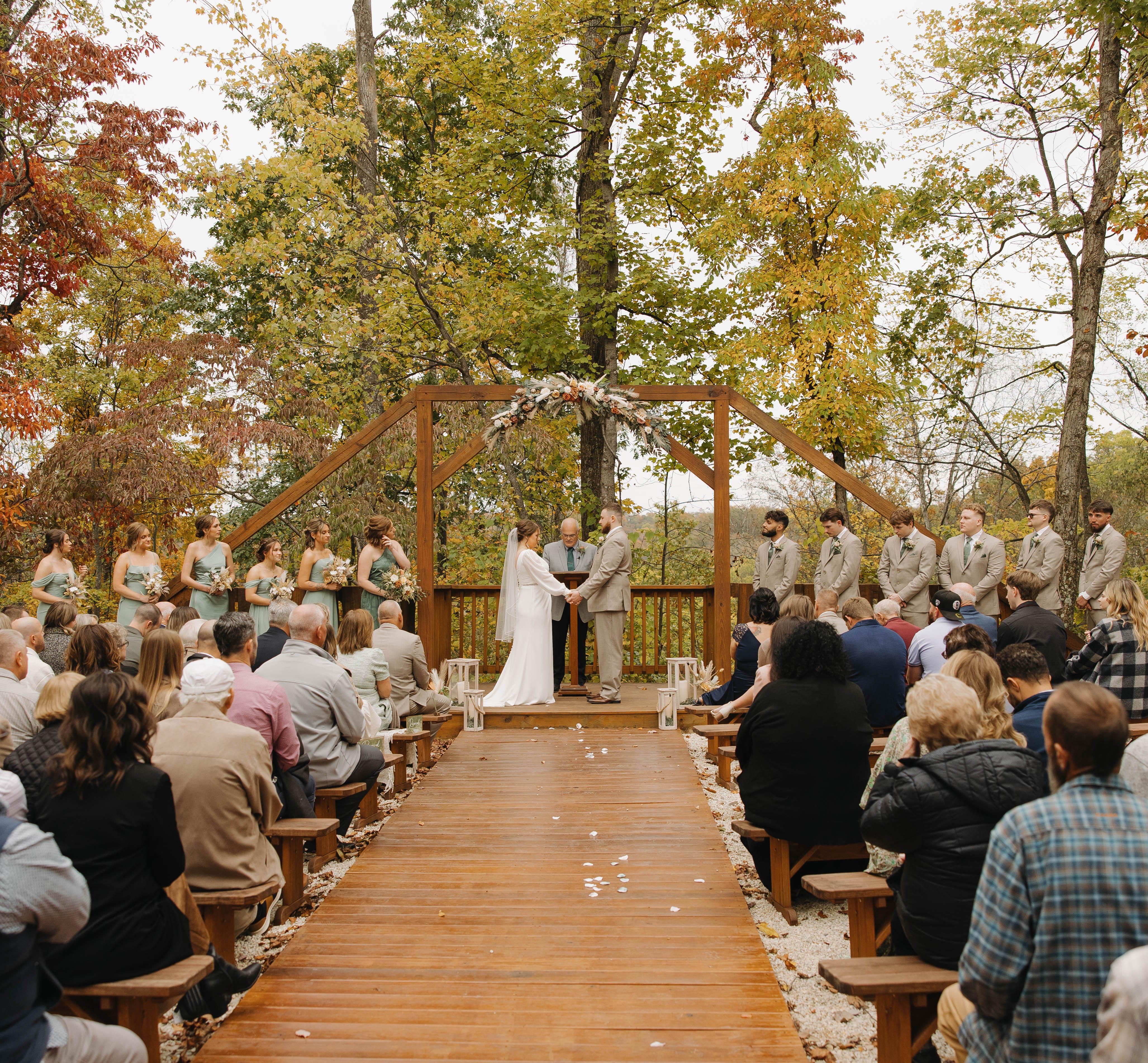 Willow Haven Lodge is a little off the beaten path, and those who venture here love what they find. Incredibly private and quiet - where you can enjoy the serenity of nature and marvel that places like this still exist. On a clear night with no moon - you can see the stars like nowhere else in Ohio. Our newly remodeled log cabin lodge has all the modern amenities that you need to plan a beautiful wedding. We also offer 11 log cabins for you and your guests to stay and enjoy the whole weekend. Six of the log cabins are completely remodeled and have their own bathrooms and kitchenettes. The other 5 log cabins are family style glamping with access to a shower/restroom within 50 feet of each cabin. All our log cabins have central heat and air conditioning! If enjoying the outdoors is your thing as a couple and you want a place like that to tie the knot - then come see our corner of paradise - we look forward to showing you around.