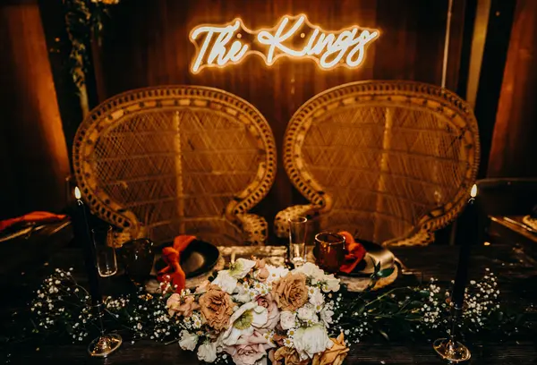 The venue exudes rustic charm and elegant simplicity, perfectly blending the natural surroundings with carefully curated details.