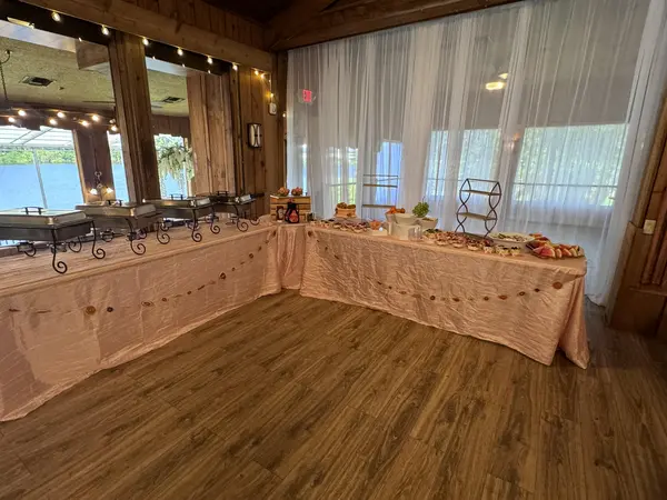 This versatile space features a stunning chandelier with the ability to accommodate anything from a birthday party to a wedding reception and everything in between. We are a stilt building on the lake so the water views are absolutely gorgeous. There is already a built in stage to best accommodate your band or DJ. We would love for you to come tour our hidden gem!